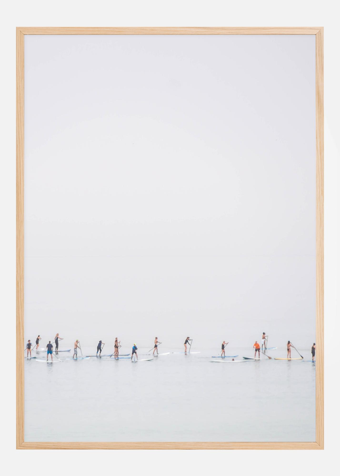Um póster de grande angular com um grupo de crianças brincando no mar. Contemple a grandiosidade desta obra minimalista. Todas as crianças preenchem a parte inferior da imagem, enquanto o vasto mar e o céu se estendem acima e abaixo delas. Crie a ilusão de luz e espaço com esta imagem ampla.
