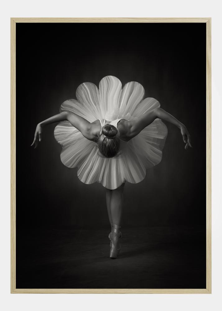 Um elegante póster com uma bailarina em uma saia semelhante a uma flor. Este belo póster irá despertar discussões sobre sua natureza abstrata e dará à sua casa uma sensação de admiração.