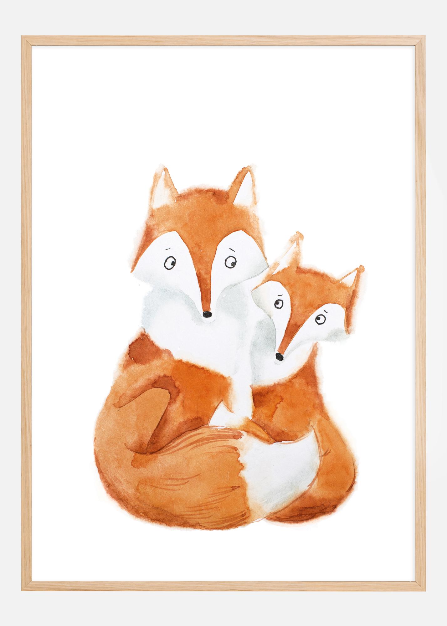 Insira uma sensação de calor e proximidade familiar com este adorável pôster de família de raposa. Ele apresenta uma grande raposa abraçando seu filhote, uma imagem que irradia amor e segurança. Os tons suaves e terrosos de ferrugem e branco na ilustração proporcionam um efeito natural e calmante, perfeito para criar uma atmosfera aconchegante em um quarto infantil ou em qualquer outra parte da casa onde se deseja destacar calor e carinho.
