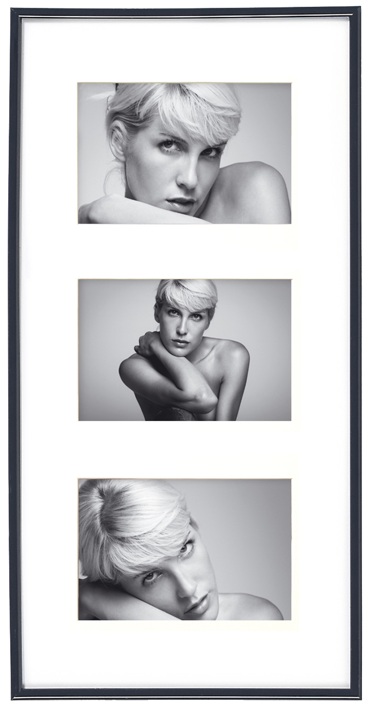 Elegante moldura preta Conjunto de molduras da popular série Galeria da Walther, com espaço para 3 fotos. Perfeita quando procura uma moldura em estilo moderno para as suas melhores fotos.