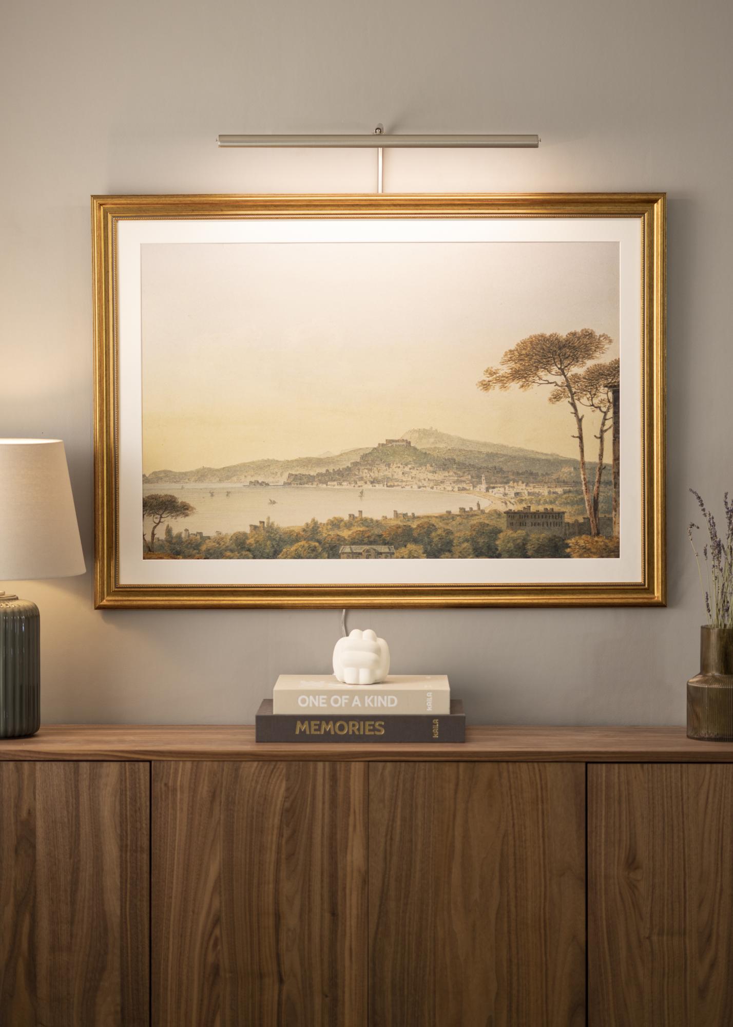 O Gallery LED da Texa Design é regulável, o que significa que pode aumentar ou diminuir a intensidade da luz para se adequar perfeitamente ao ambiente circundante e realçar sua obra de arte exatamente como desejar. E não é só isso, também pode ajustar a temperatura de cor - de branco quente a branco frio. As possibilidades são infinitas! Tanto a intensidade da luz quanto a temperatura de cor são ajustadas usando a função de toque nas laterais da lâmpada.