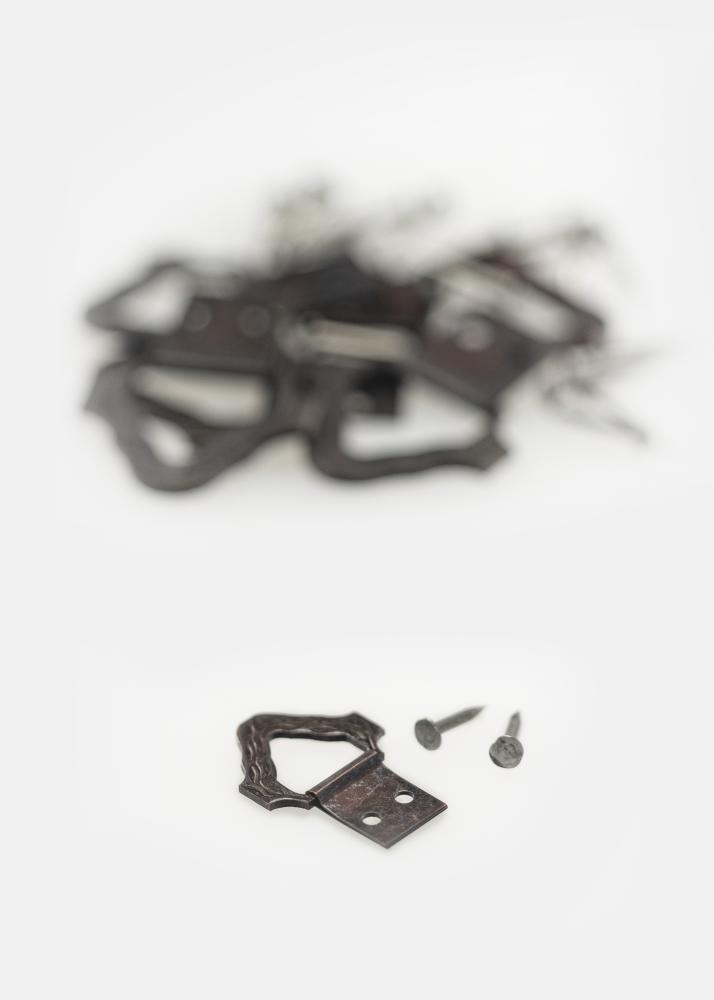 Pendente de triângulo um pouco mais exclusivo que é pregado na parte de trás da moldura. Perfeito para molduras mais antigas e mais elegantes. O pendente é feito para ser visível acima da moldura quando pendura a moldura. Pode escolher se usa um ou dois pendentes. Este é feito para molduras mais leves (tamanho máximo da moldura: 24x30 cm)