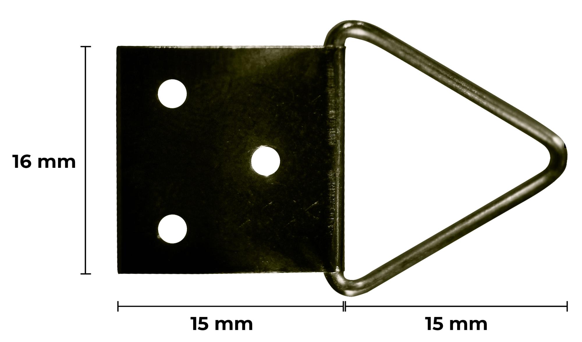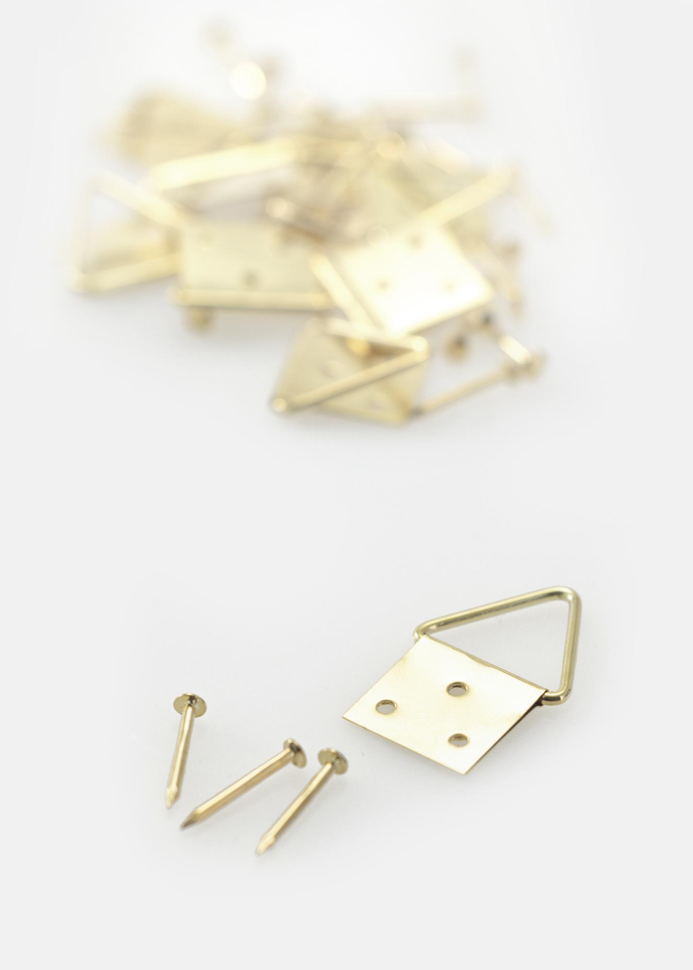 Gancho de triângulo em latão. Fixa-se na parte de trás da moldura com pregos. Pode ser usado como um único gancho ou dois ganchos se quiser usar fio de quadro. Este gancho é perfeito para quadros um pouco maiores (tamanho máximo: 60x90 cm)