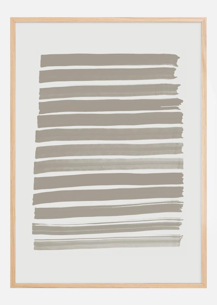 Introduza uma atmosfera calma e serena no seu espaço com este moderno cartaz que retrata uma série de pinceladas pintadas à mão. O charme minimalista da obra de arte é refletido nos diferentes tons de cinza que criam um efeito texturizado sobre o fundo creme. Este cartaz é uma excelente escolha para quem aprecia arte subtil e procura um elemento sofisticado na sua decoração.