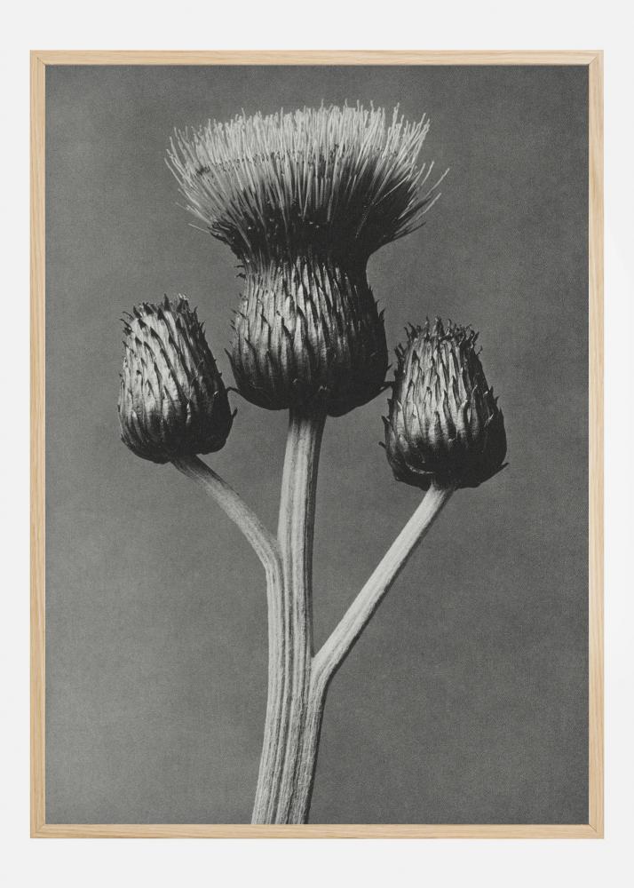 Uma impressão impactante com uma flor cinzento chamada cardo. Esta impressão simples, mas incrível, retratada num fundo cinzento, cria uma sensação de solidão. Com a luz natural iluminando suavemente a flor, este é um póster perfeito para todos que amam flores.