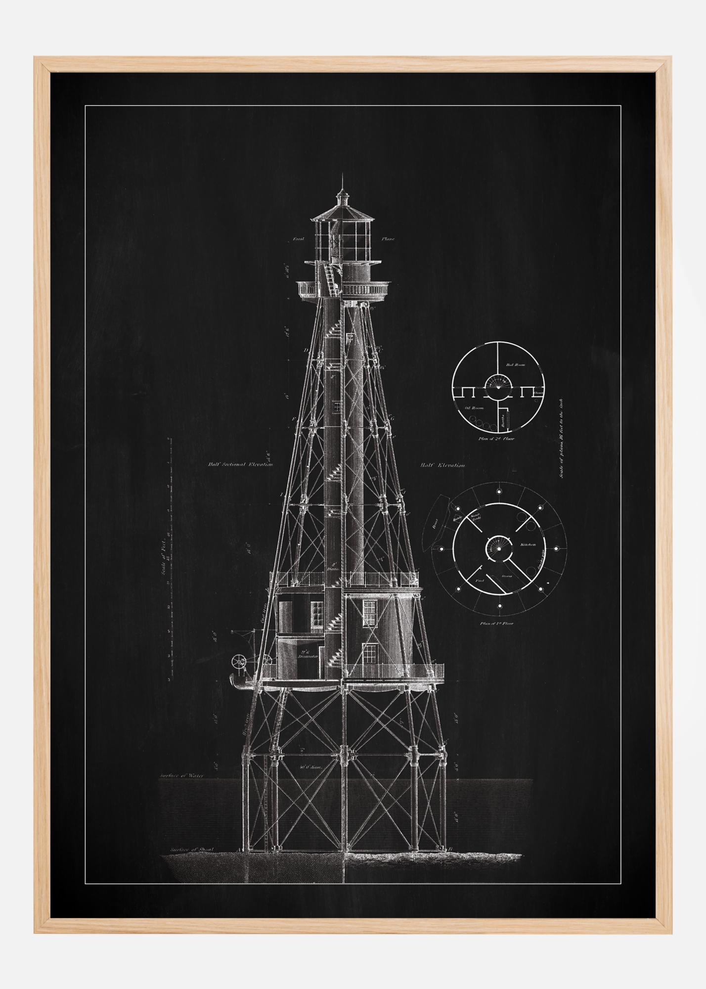 Se tem uma predileção por componentes de decoração que trazem história, temos aqui o póster perfeito! O póster remete a um quadro negro com um desenho arquitetônico cuidadosamente elaborado. O desenho representa o belo farol de ferro Ship Shoal Light, que se ergue na costa da Louisiana. O farol foi construído e entrou em funcionamento em 1859 e sobreviveu a muitos furacões, mas ao longo do tempo começou a inclinar-se. Por volta de 1866, descobriu-se que os guardiões do farol estavam ficando doentes e, após uma investigação, encontrou-se tinta tóxica no tanque de água do farol. Em 1965, a lâmpada foi apagada para sempre, mas o farol ainda permanece como um fascinante monumento.