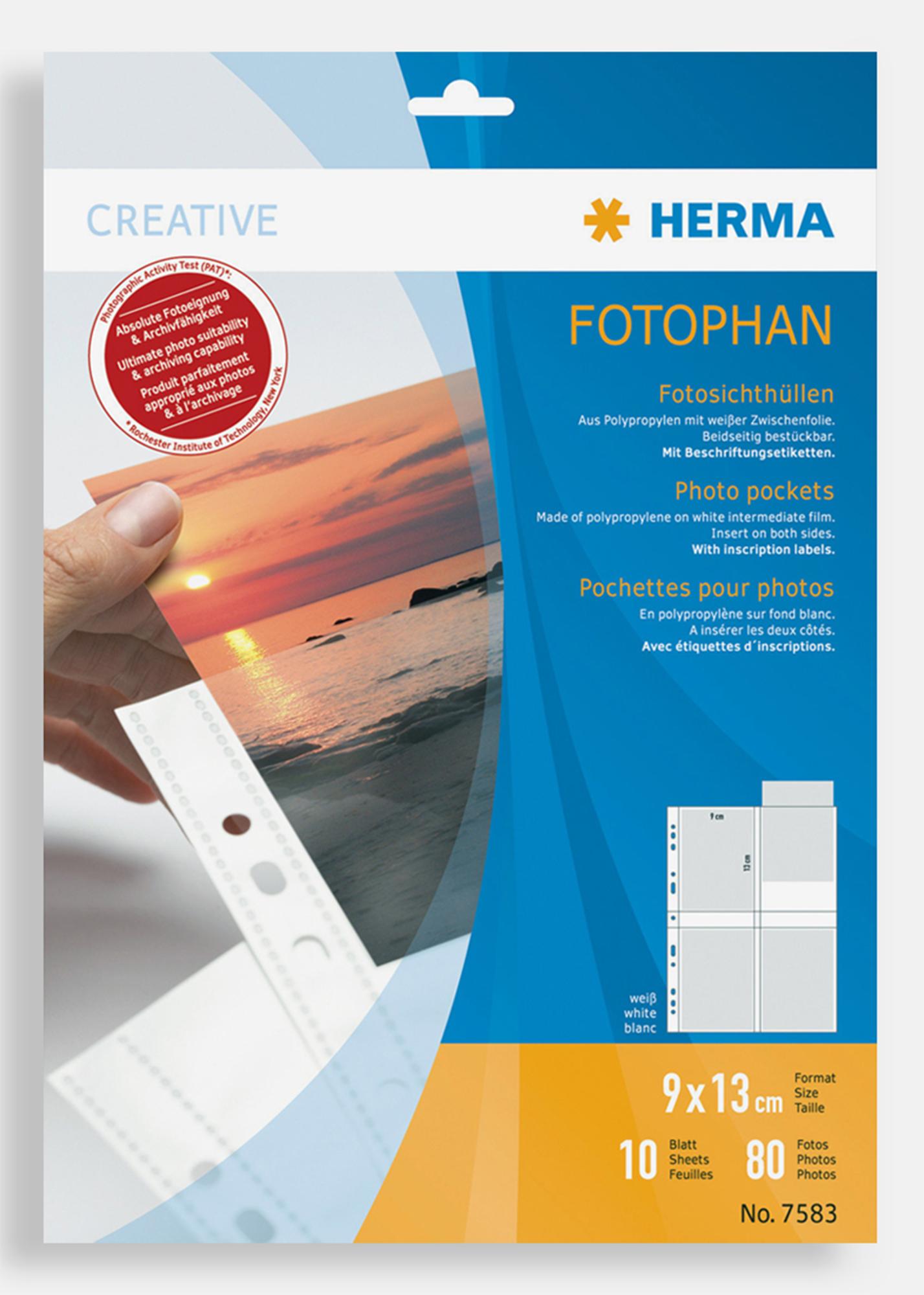 bolsas de fotos brancos de dupla face para fotos no formato 9x13 cm (formato vertical). Todos as bolsas de fotos da Herma são sempre livres de PVC, livres de ácido e garantidamente inofensivos para as suas fotos. Os bolsas de fotos são adequados para montagem em pastas de argolas de formato padrão.