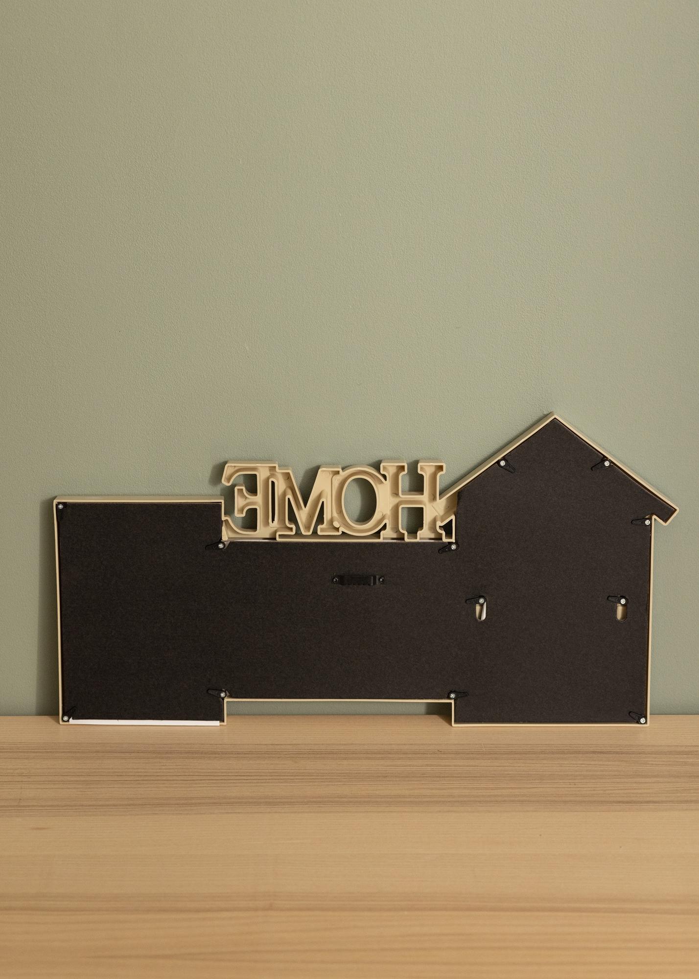 Eleve a sensação de lar com este porta-retratos em forma de colagem! A moldura tem um design engenhoso, onde uma das imagens é enquadrada por uma pequena casa. Na parte superior da moldura, há o texto "HOME", que combina perfeitamente com fotos da família, animais de estimação e outros motivos que proporcionam uma sensação acolhedora. A tonalidade de cor elegante e a superfície lindamente desgastada conferem à moldura uma aparência mais rústica.