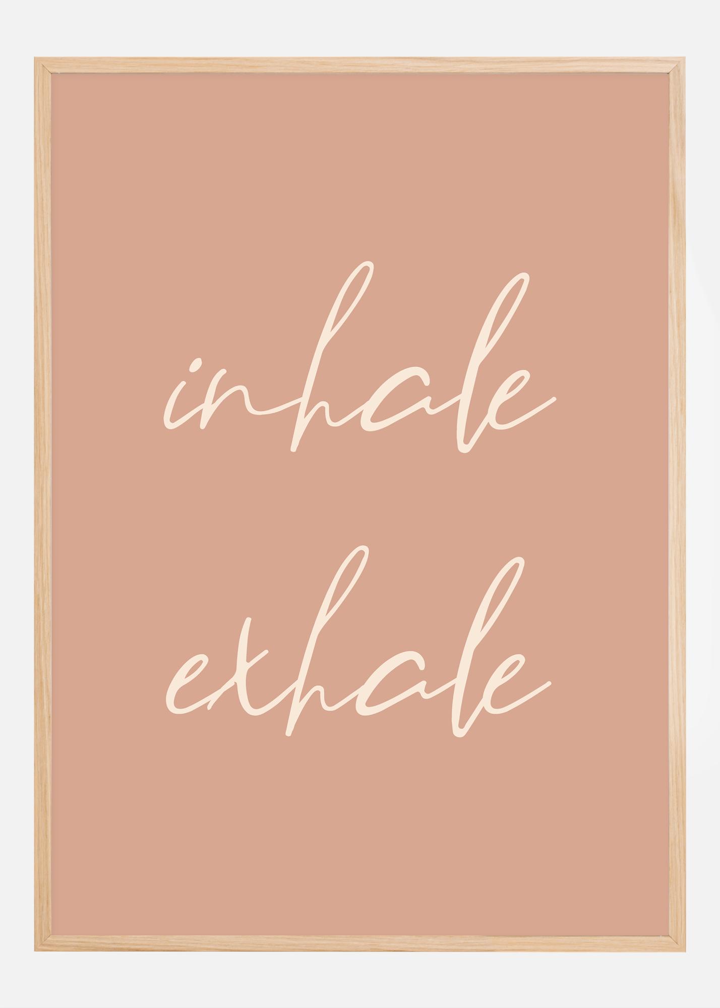 Este pôster puro e calmante, com as palavras "inhale" e "exhale" elegantemente escritas, convida à tranquilidade e reflexão em qualquer espaço que seja colocado. É um lembrete constante do poder da respiração e da paz interior que pode ser alcançada através da presença consciente. A cor de fundo suave em rosa suave oferece uma impressão relaxante e terapêutica que complementa as palavras fluidas e manuscritas.