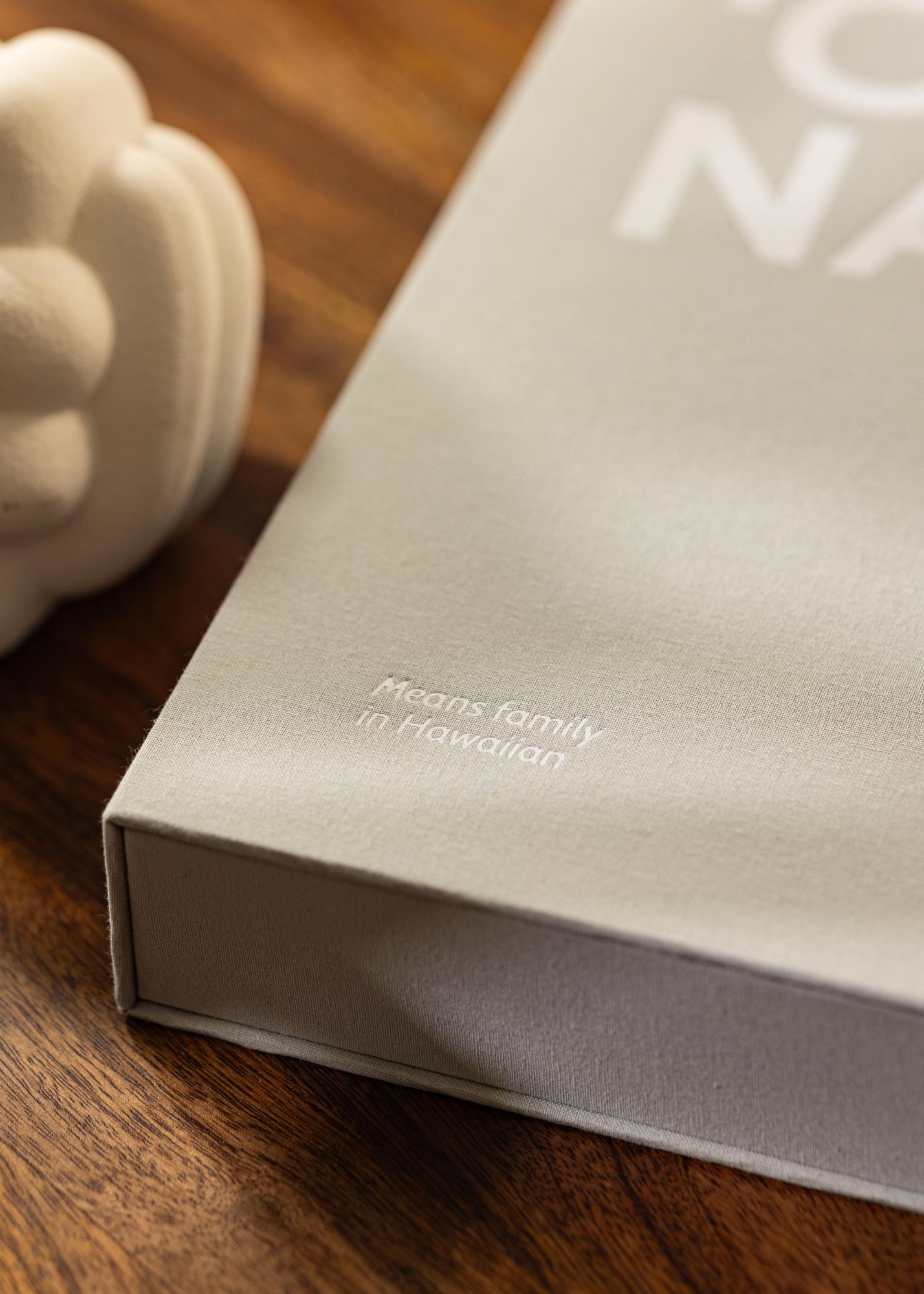 Este elegante Álbum de Fotos de Mesa tem o título 'OHANA', que significa "família" em havaiano. Como se define família é muito individual e com este álbum de fotos você tem a chance de realmente mostrar aos seus entes queridos o quanto eles significam para si.