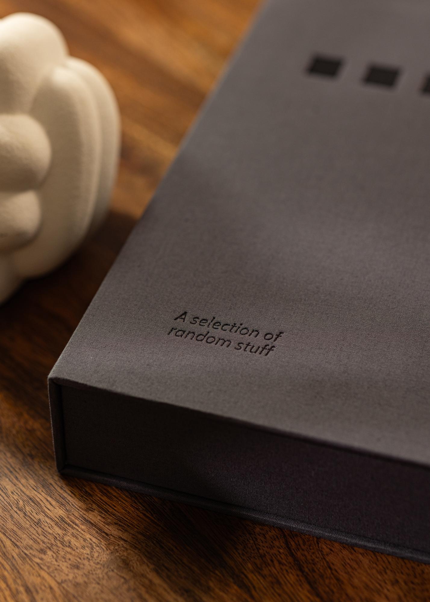 Quando as palavras são desnecessárias e as imagens e memórias podem falar por si mesmas, então pode adquirir um álbum de fotos intitulado: ... Este álbum de fotos para mesa de café tem um design diferente e divertido - mas ao mesmo tempo muito elegante - que o torna tanto um elegante e moderno detalhe de decoração quanto um álbum de fotos prático. O álbum de fotos é elegantemente revestido em tecido preto e o título sem palavras está impresso brilhantemente na capa do álbum. No canto inferior esquerdo do álbum, também encontrará uma impressão com o subtítulo Uma seleção de coisas aleatórias.