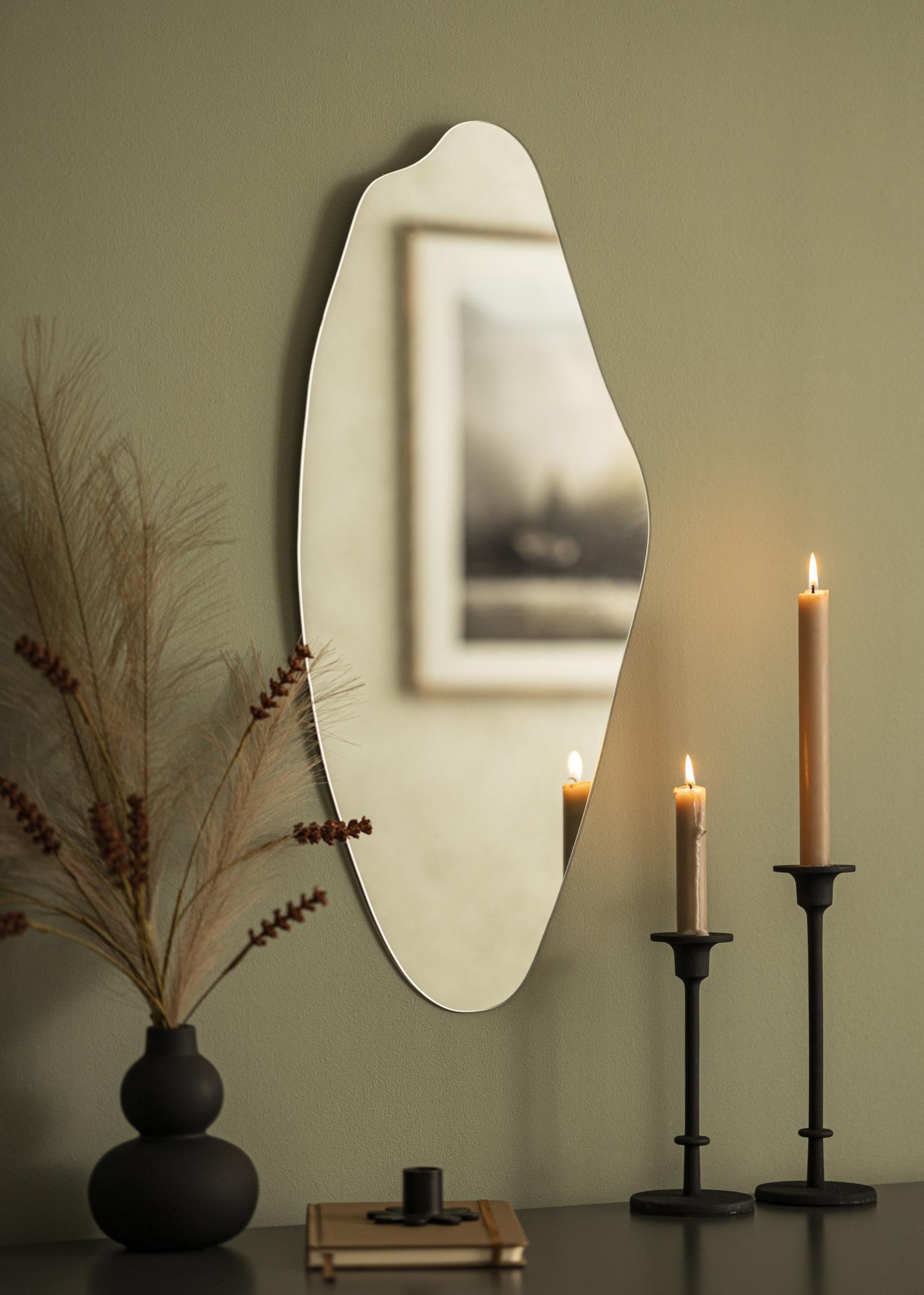 Este é um espelho retangular com uma bela forma assimétrica, tornando-o um detalhe de decoração emocionante que encaixa-se perfeitamente na casa moderna. O espelho possui suportes de parede práticos na parte de trás e é pendurado na parede da sala que desejar - ele até mesmo se adequa ao uso na casa de banho!