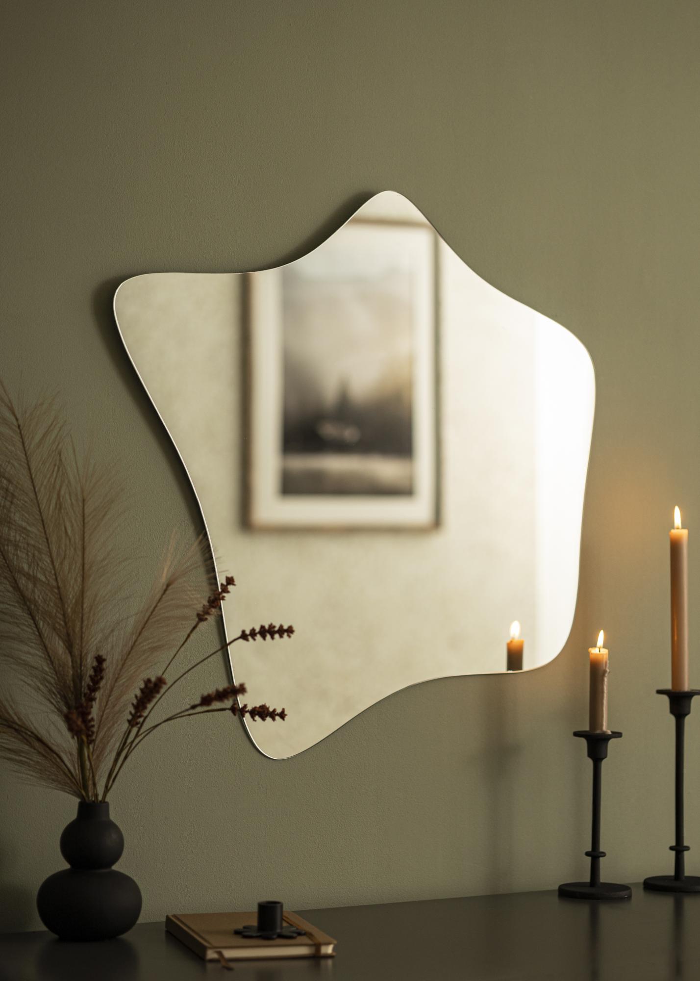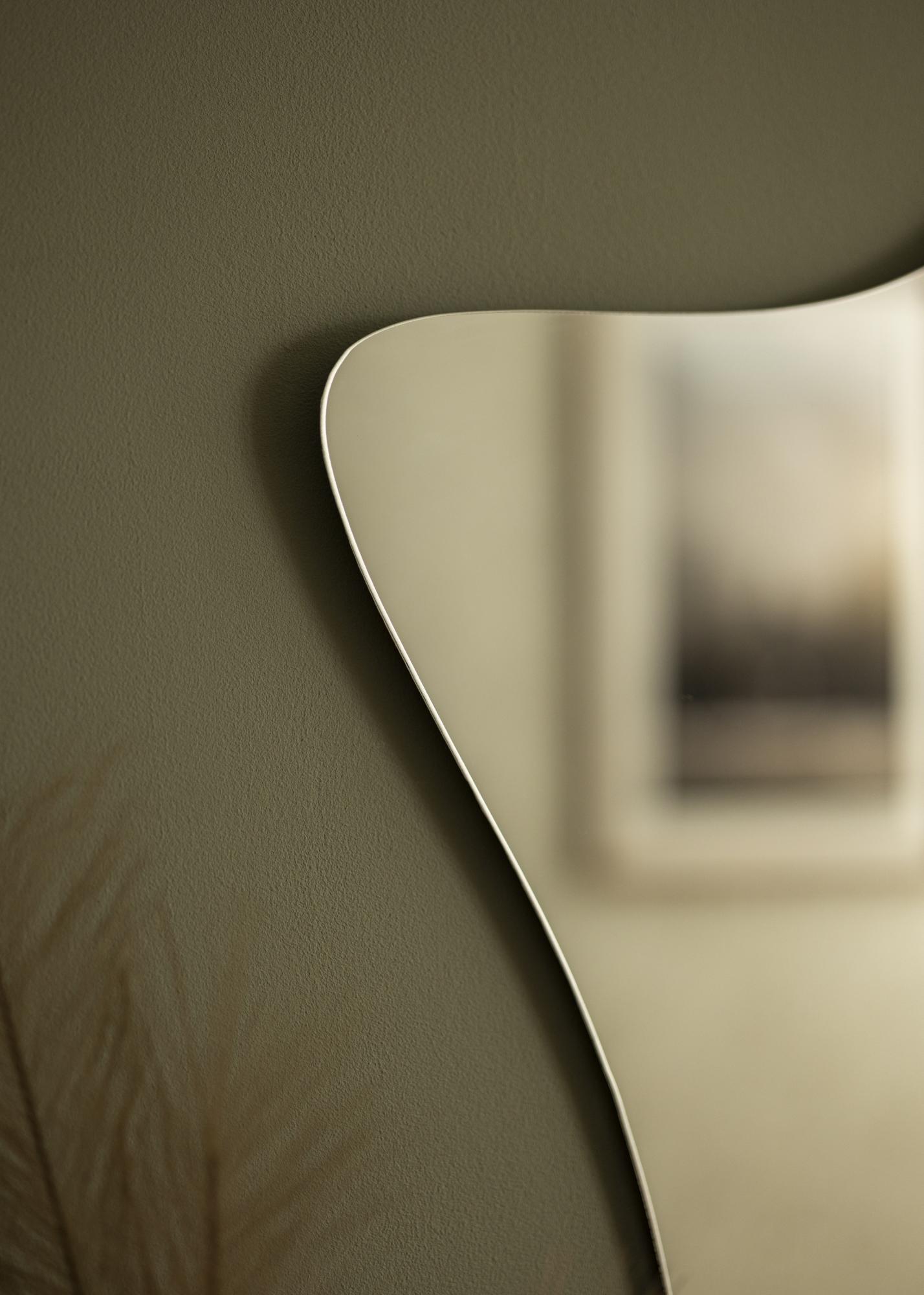Minimalismo moderno e uma forma inspirada na natureza - este espelho de parede oferece o melhor dos dois mundos! A forma única lembra as florescendo anêmonas, ao mesmo tempo em que o design sem moldura e o vidro do espelho de 4 mm de espessura conferem ao espelho uma aparência elegante e moderna.