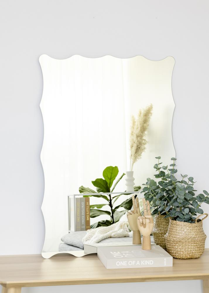 Espelho da KAILA, com uma forma ondulada linda para uma impressão extra elegante. Este espelho de parede é um detalhe de decoração perfeito para o quarto ou sala de estar, graças ao seu design atemporal. O espelho tem um acabamento clássico com vidro de espelho fino e incolor e um suporte de parede que permite uma fácil suspensão. Este espelho tem um tamanho de 70x100 cm.