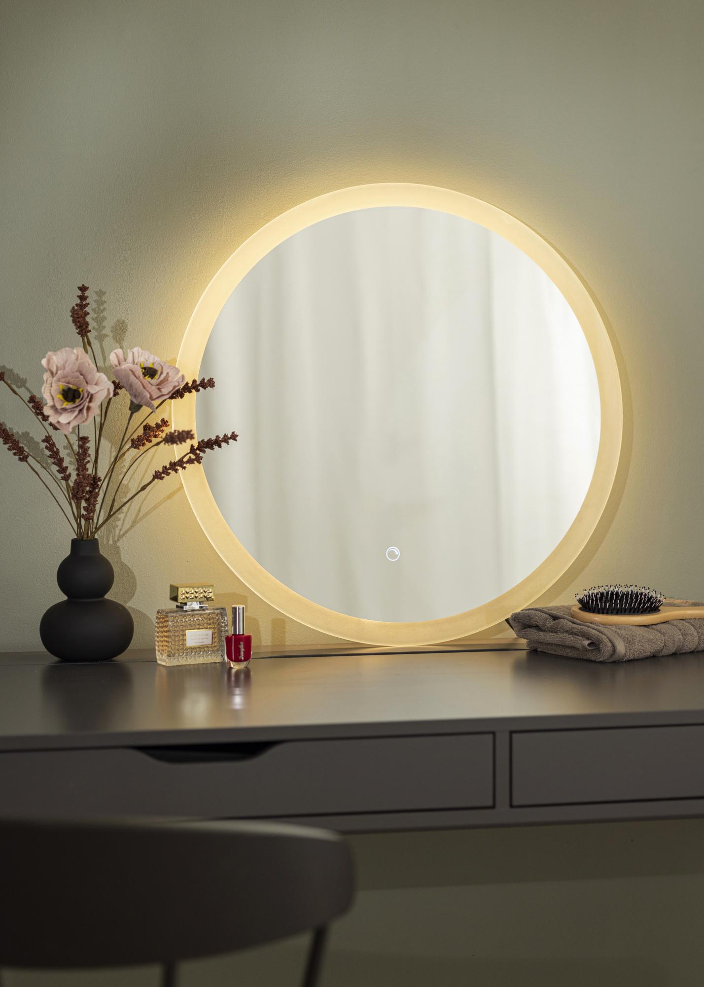Um espelho com iluminação integrada torna a sua rotina matinal muito mais conveniente! este modelo tem uma forma redonda clássica e uma luz suave agradável em 3000K. O elegante espelho de parede é perfeito para a casa de banho e, devido ao seu tamanho compacto, medindo 60 cm de diâmetro, também pode ser usado em espaços limitados.