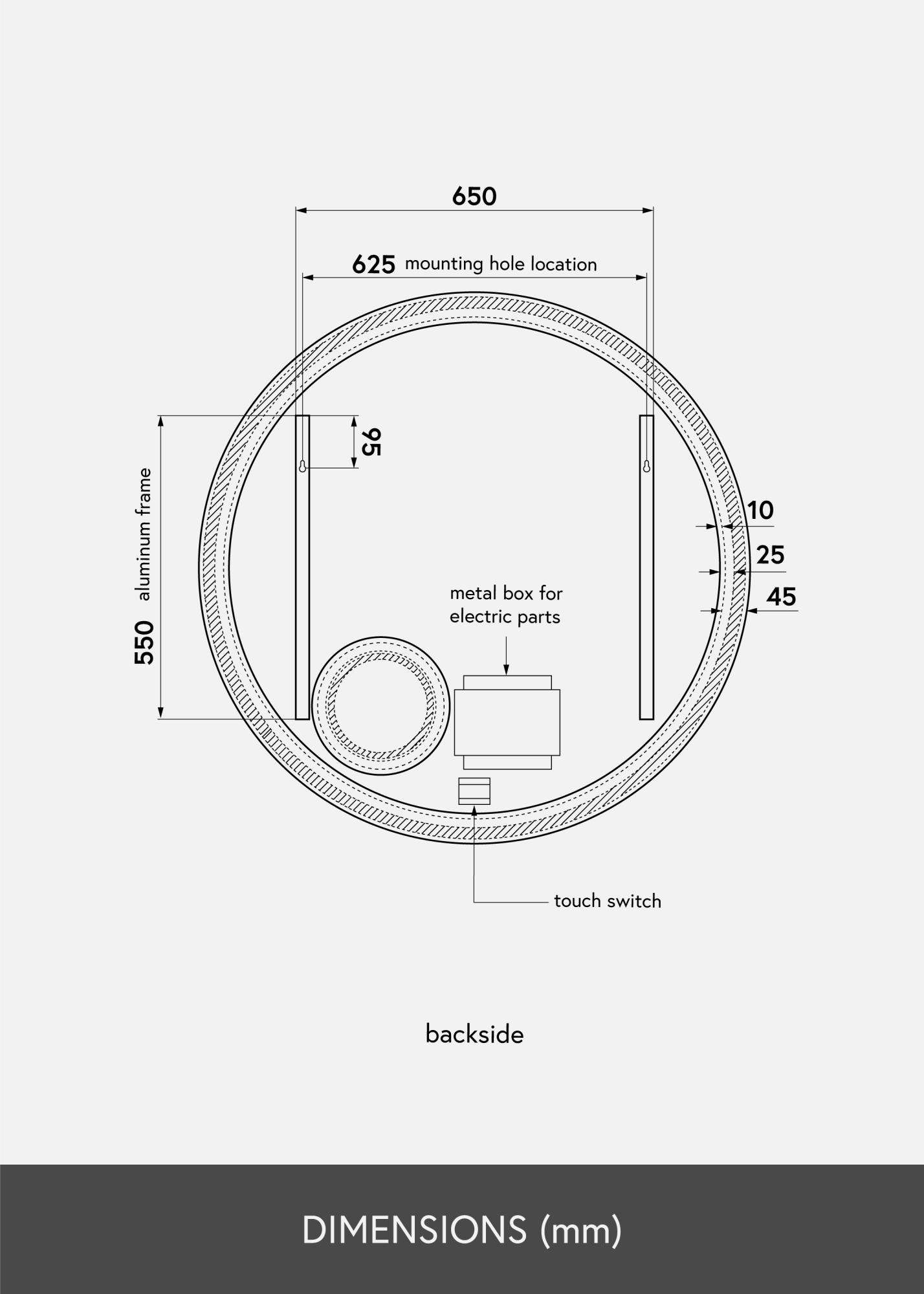 Este espelho tem uma aparência moderna e minimalista sem moldura, o que o torna elegante tanto na casa de banho quanto no corredor. O espelho é destinado à instalação fixa e é conectado a um interruptor de energia. Para que o espelho funcione corretamente, ele deve ser conectado a um interruptor de energia comum, não a um interruptor de atenuação.