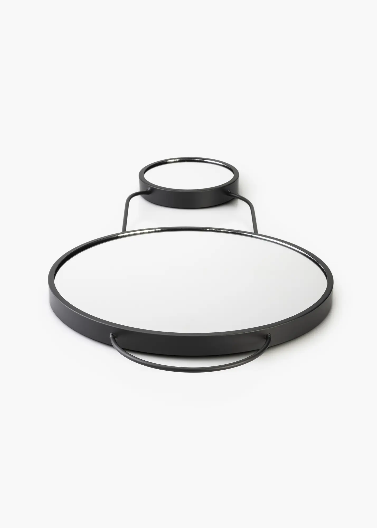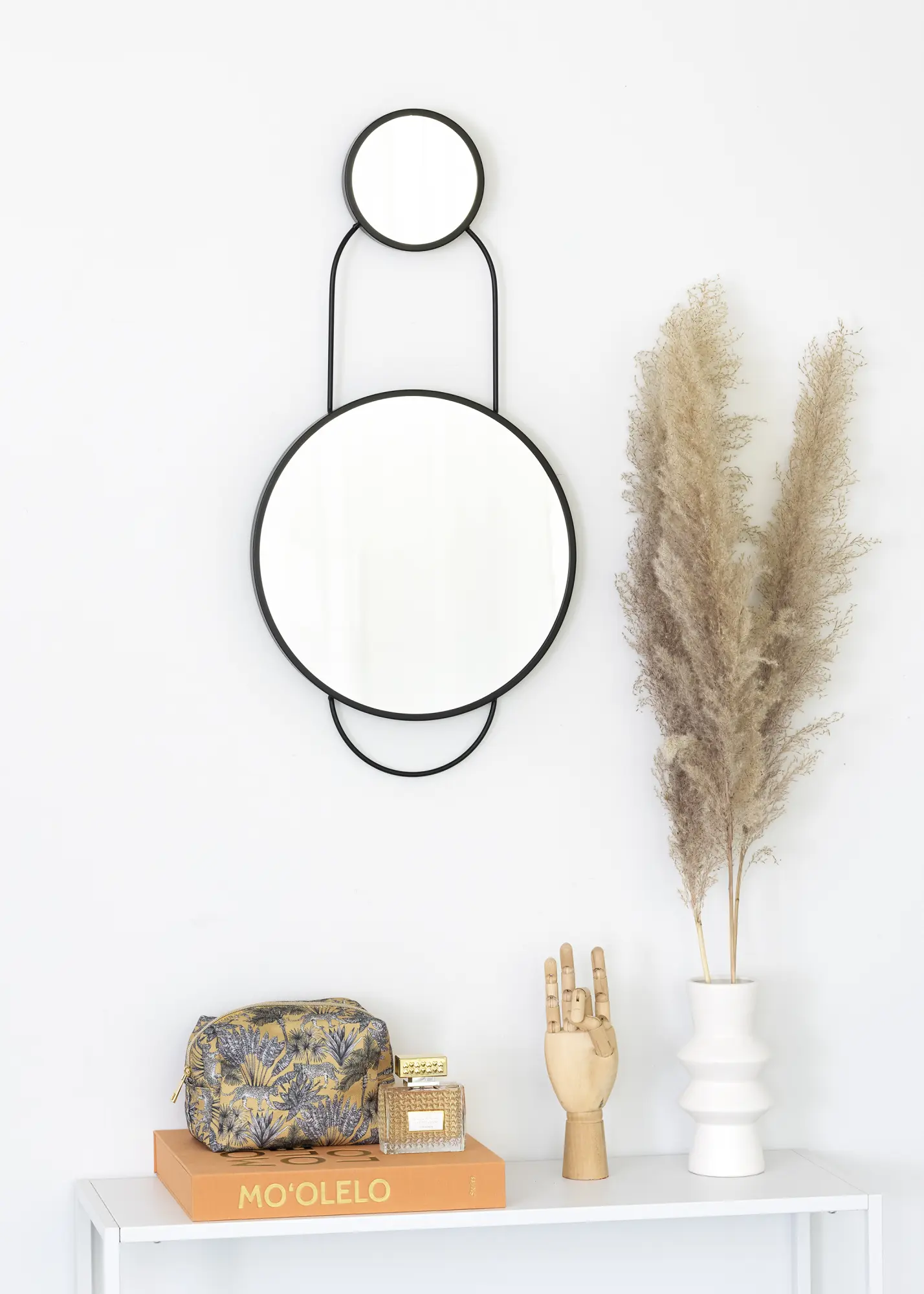 Este é um espelho de parede incrível da KAILA com dois espelhos combinados num design único e elegante. O espelho de parede num espelho mais pequeno na parte superior e um maior na parte inferior. O espelho mede 35x71 cm e é feito de metal. O espelho tem um tom preto elegante que confere-lhe um design muito moderno.