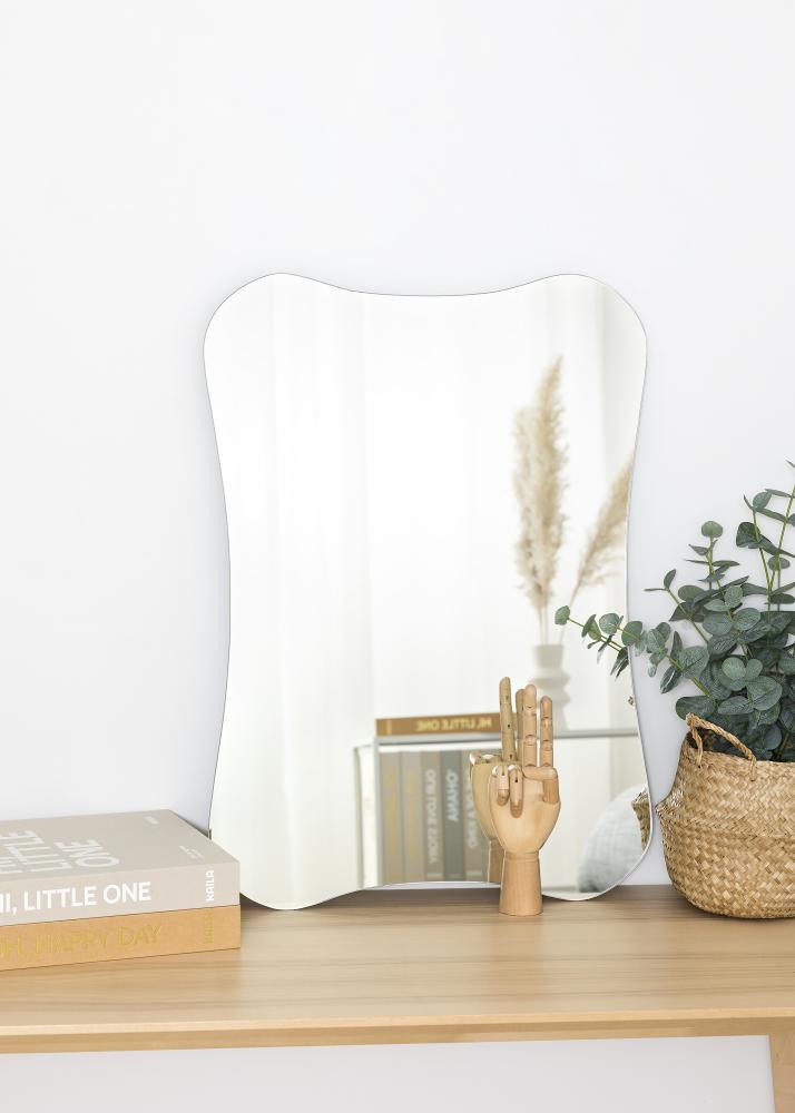 Espelho retangular da KAILA, com cantos arredondados que criam uma bela forma curva para dentro. O visual clássico do espelho combina com casas tradicionais e modernas, e o vidro do espelho sem cor proporciona elegância atemporal. O espelho possui um suporte de parede prático que permite pendurá-lo tanto na vertical quanto na horizontal. Este espelho de parede tem um tamanho de 50x70 cm.