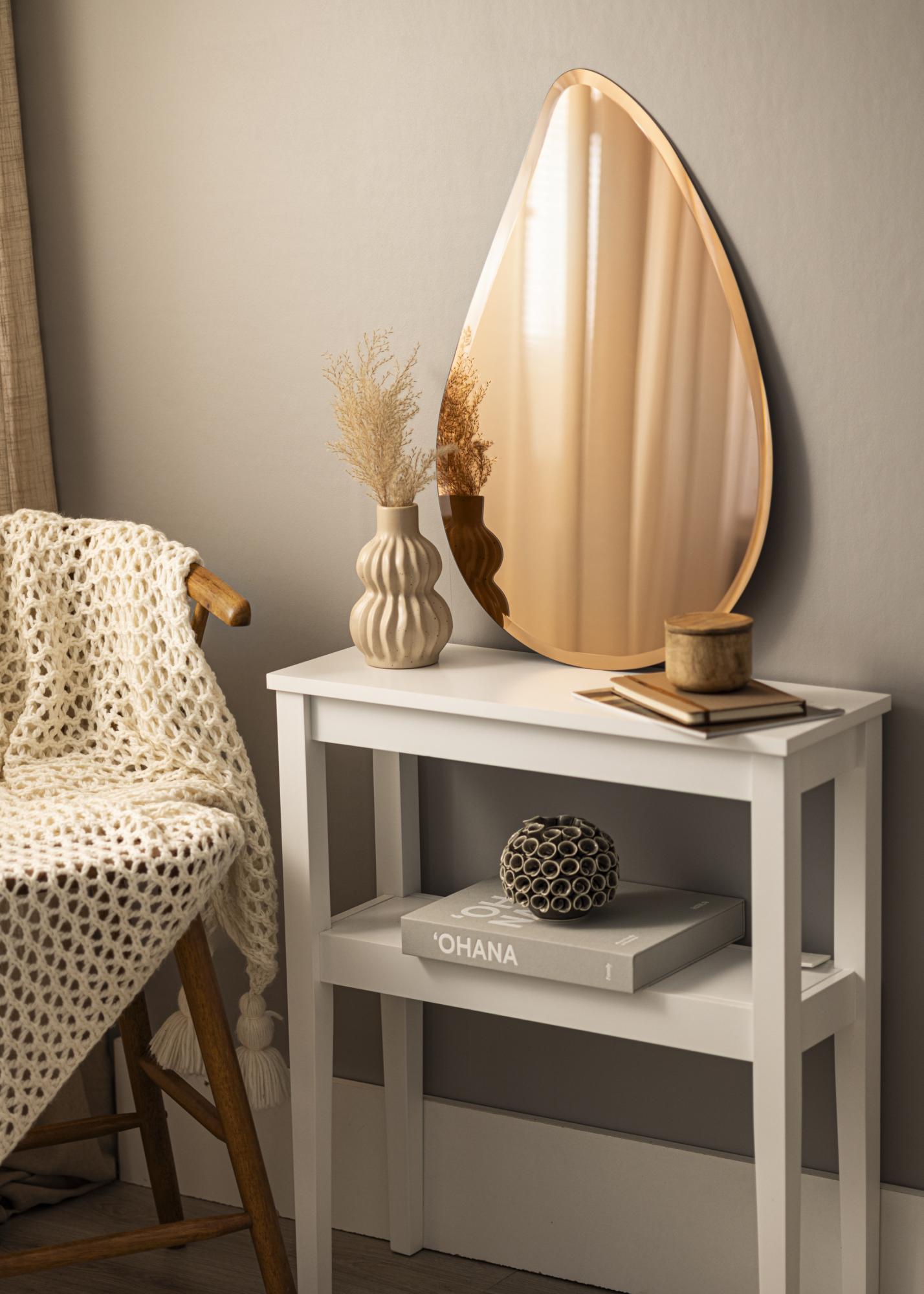 Este espelho encantador tem a forma de uma gota, o que confere-lhe uma aparência suave e elegante. Além disso, o espelho possui uma borda facetada - algo que também realça a sensação exclusiva. Mas o que talvez torne este espelho um detalhe de decoração realmente moderno é o vidro do espelho em tom de ouro rosado, que cria um efeito impressionante e contemporâneo!