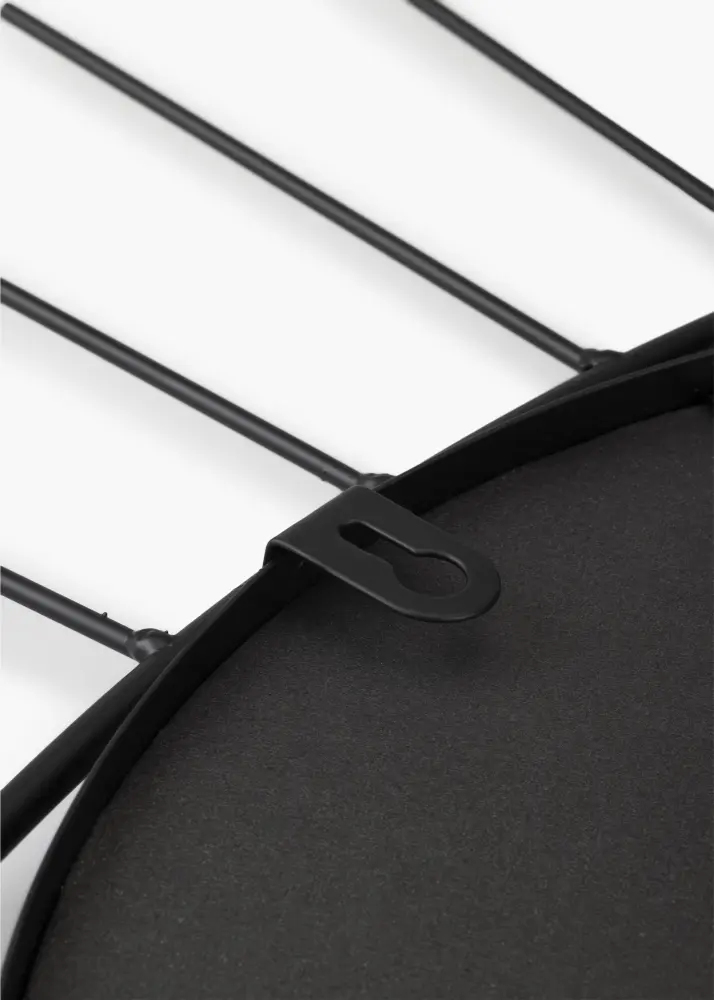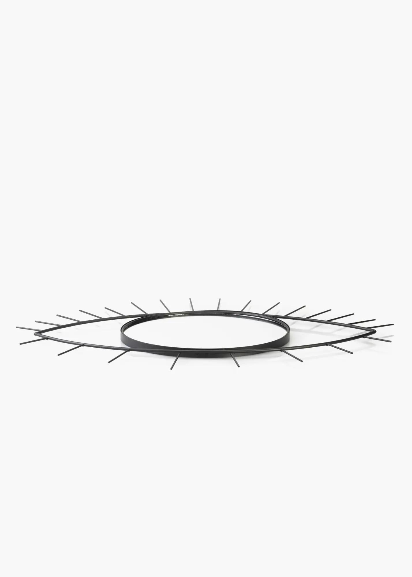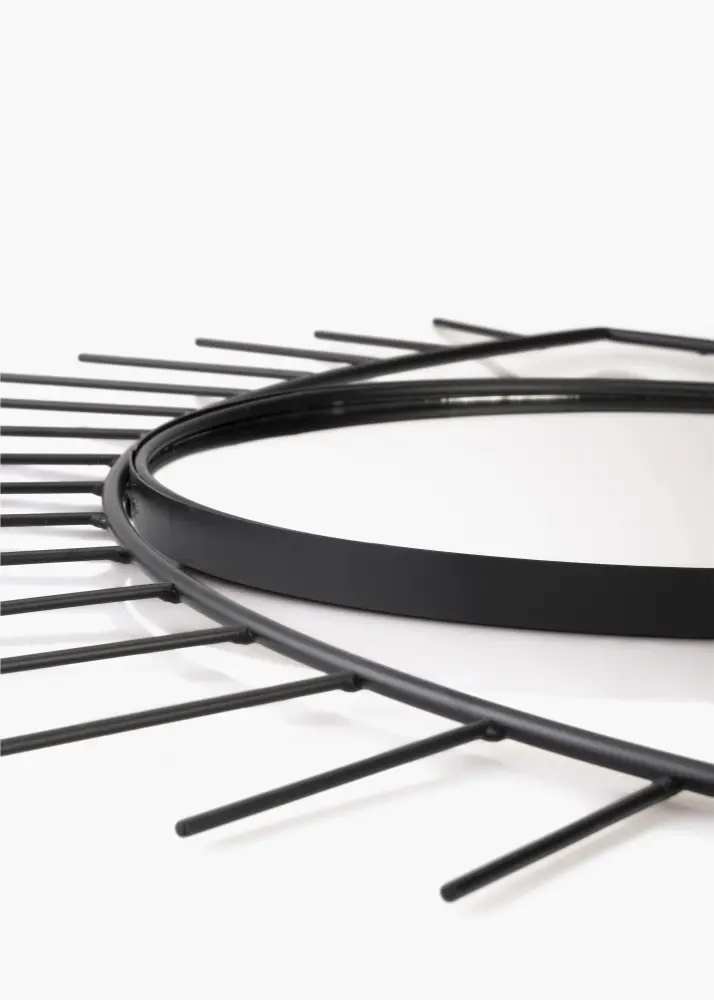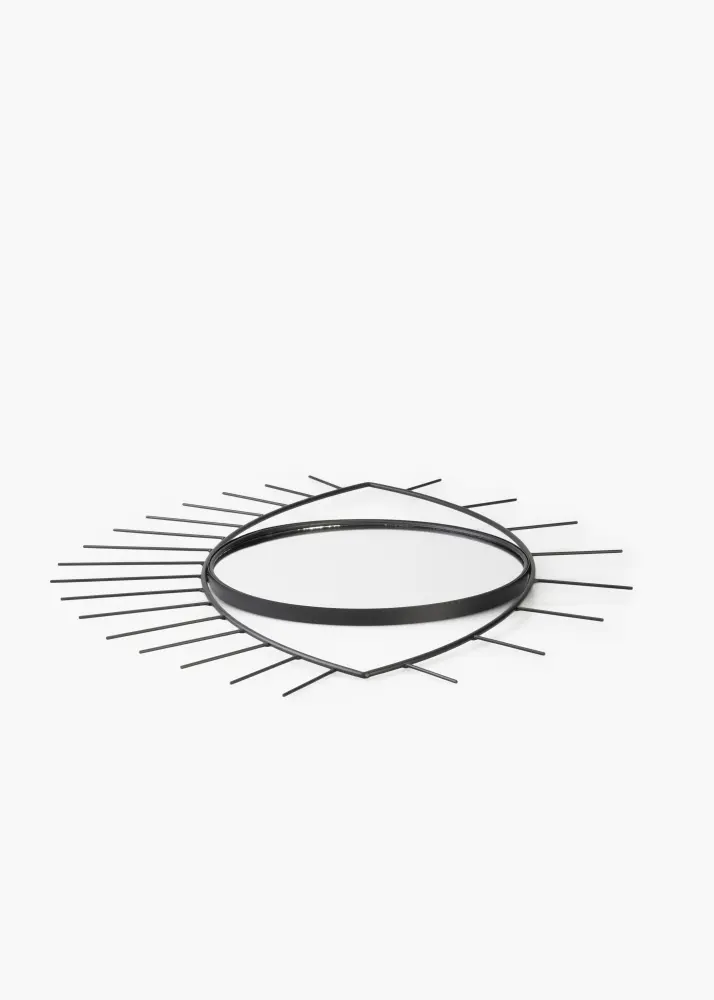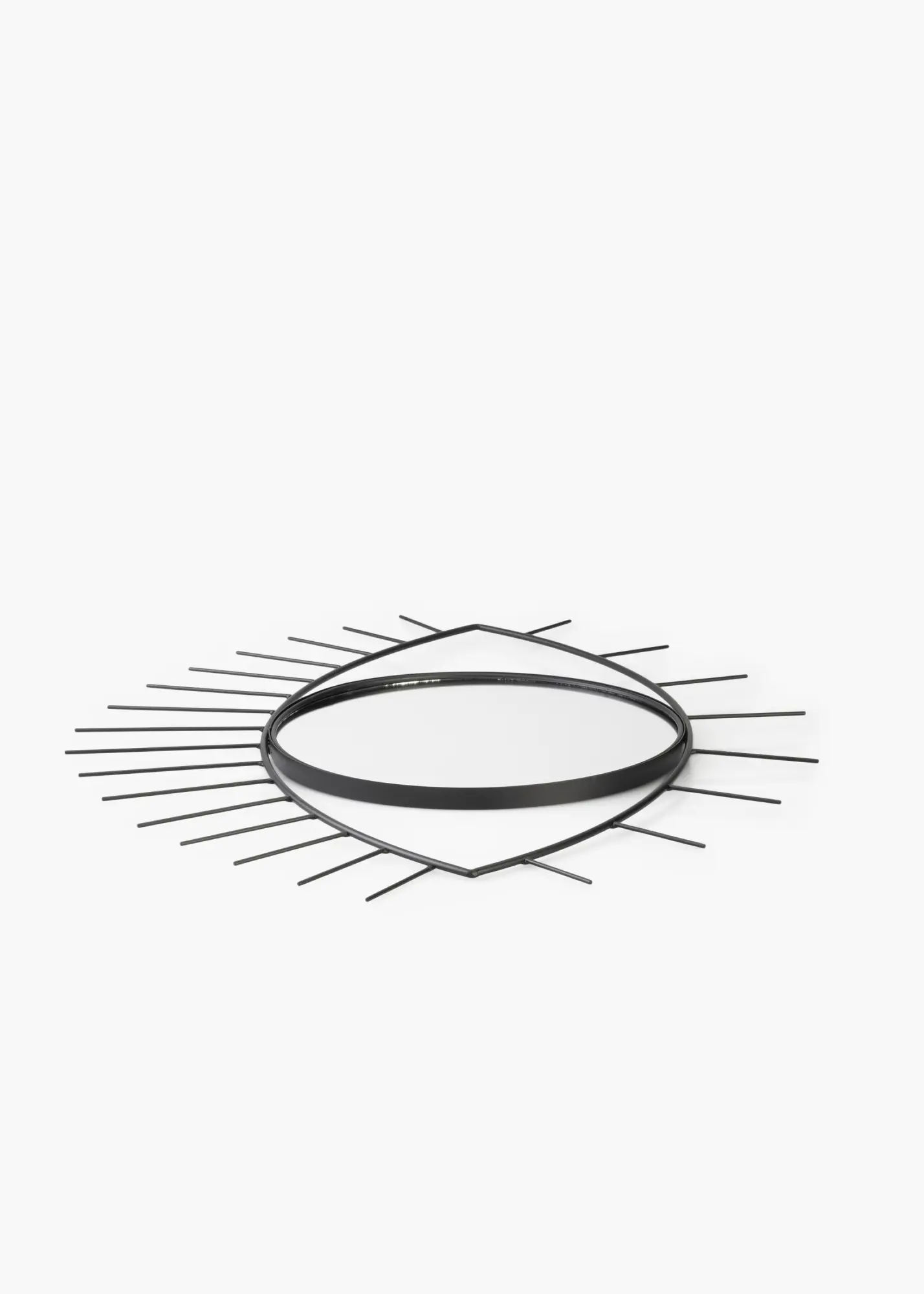 Esta é realmente uma moldura de espelho num design único que vai chamar a atenção em sua casa! Este espelho tem um design que imita um olho e cílios metálicos ao redor. O espelho tem um tom preto elegante e mede 55x70 cm. O espelho tem uma sensação boêmia e pode ser combinado com quadros e outras decorações de parede para uma aparência elegante e completa.