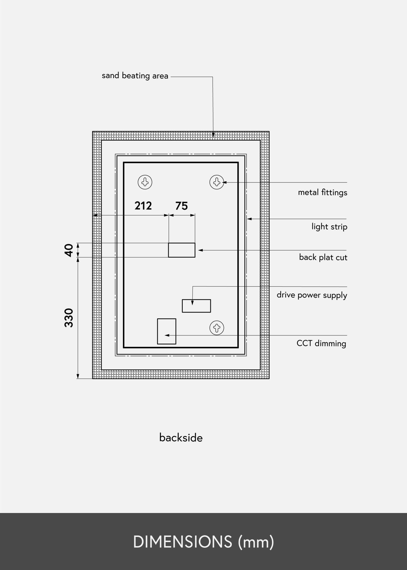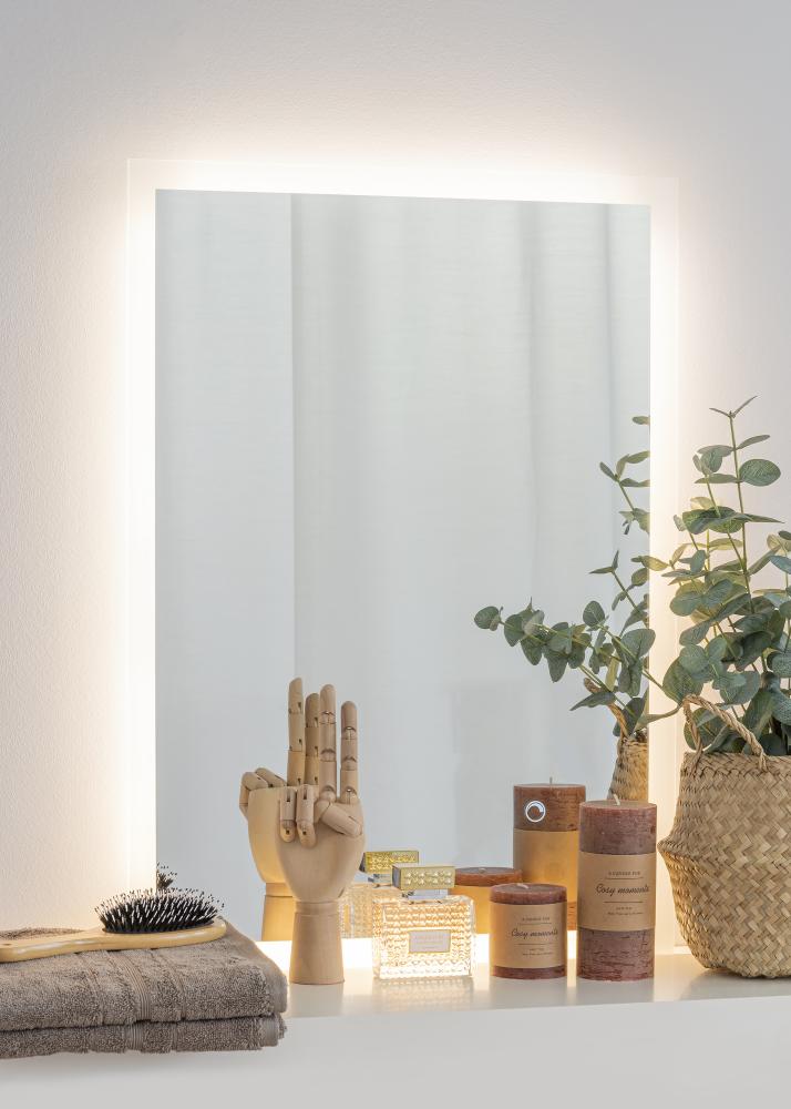 O elegante espelho de casa de banho tem apenas 3 cm de profundidade e mede 50x70 cm. O espelho é aprovado para uso em casa de banhos e seu design elegante realmente adiciona uma sensação luxuosa à sua casa! O espelho de casa de banho é destinado à instalação fixa e deve ser conectado a um interruptor de energia. Para que o espelho funcione corretamente, ele deve ser conectado a um interruptor de energia comum, não a um interruptor de regulador.