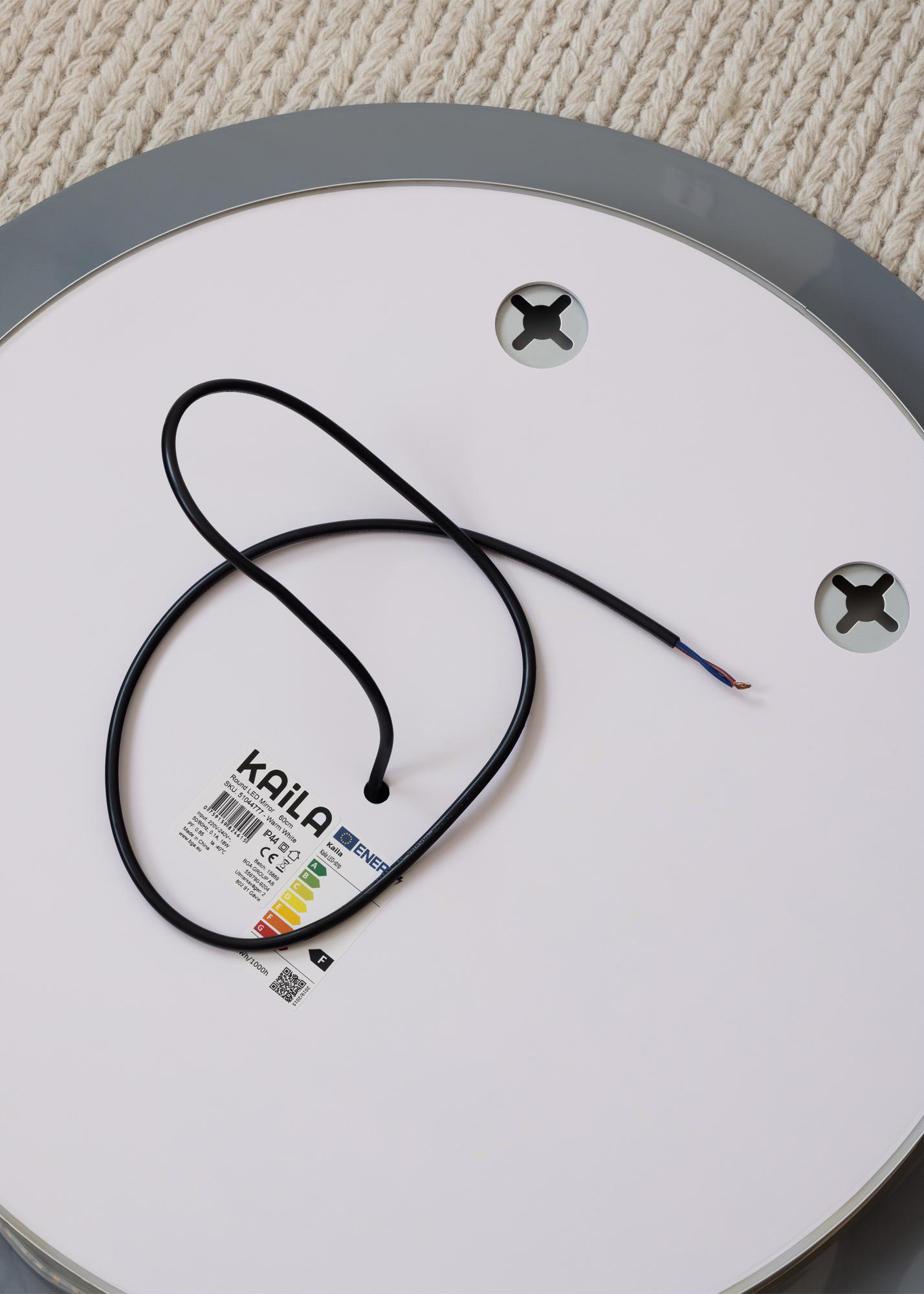 O espelho é aprovado para uso em casa de banhos, mas o seu design atemporal e elegante também fica bonito em outras paredes da casa. O espelho tem 60 cm de diâmetro, apenas 3 cm de profundidade e possui suportes de parede. O espelho é destinado à instalação fixa e deve ser conectado a um interruptor de energia. Para que o espelho funcione corretamente, ele deve ser conectado a um interruptor de energia comum, não a um interruptor de regulador.