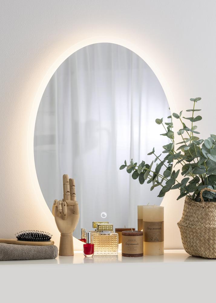 Esta é realmente uma elegante espelho de casa de banho com o seu formato oval e iluminação LED integrada! A iluminação LED integrada é regulável e a intensidade é ajustada facilmente pressionando o botão tátil à prova d'água na tela. A iluminação é emitida em um tom branco quente de 3000K atrás do espelho, proporcionando um brilho agradável para a frente. O LED é uma lâmpada de baixo consumo de energia que oferece uma luz uniforme e natural. O espelho é aprovado para uso em casa de banhos. O espelho de casa de banho é destinado à instalação fixa e deve ser conectado a um interruptor de energia. Para que o espelho funcione corretamente, ele deve ser conectado a um interruptor de energia comum, não a um regulador.