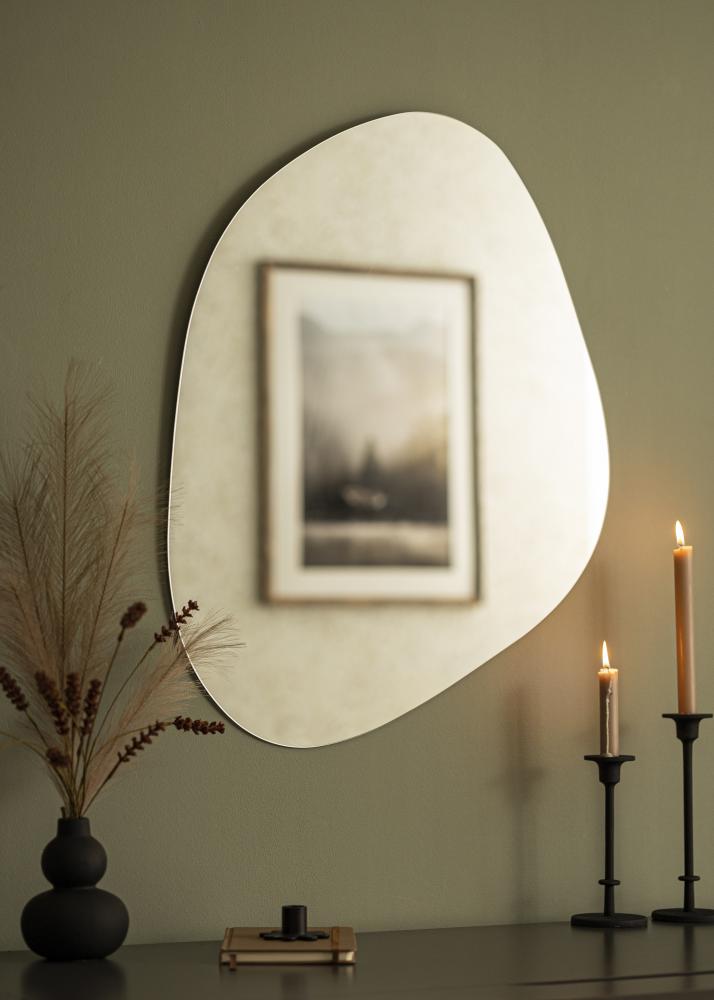 Está à procura de um elegante espelho de parede para a sua casa? Então este espelho é perfeito para si! O espelho possui um design sem moldura, com vidro espelhado fino de apenas 4 mm e uma forma suave, que contrasta lindamente com as linhas retas do restante da decoração.