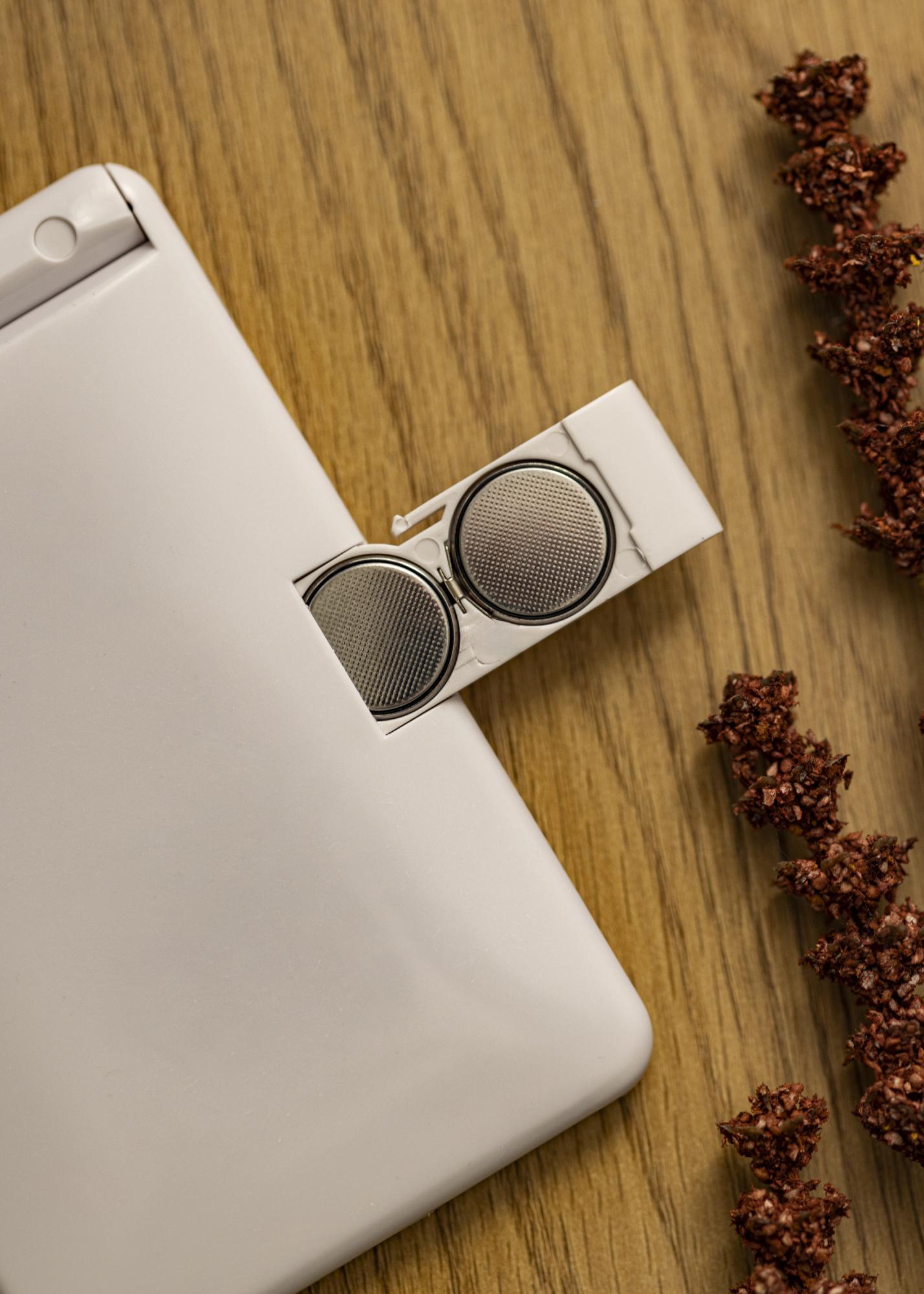 Funciona com 2 pilhas CR2025. Não incluídas.