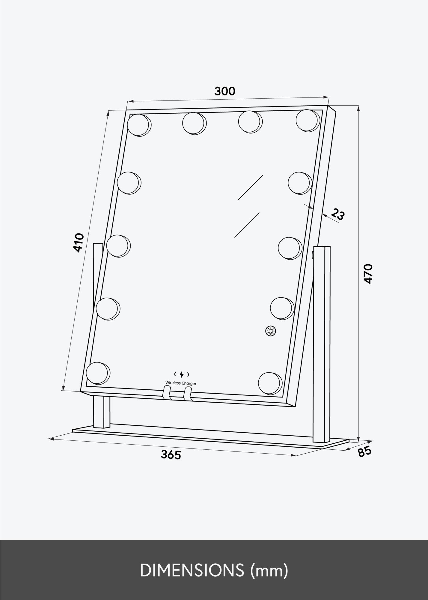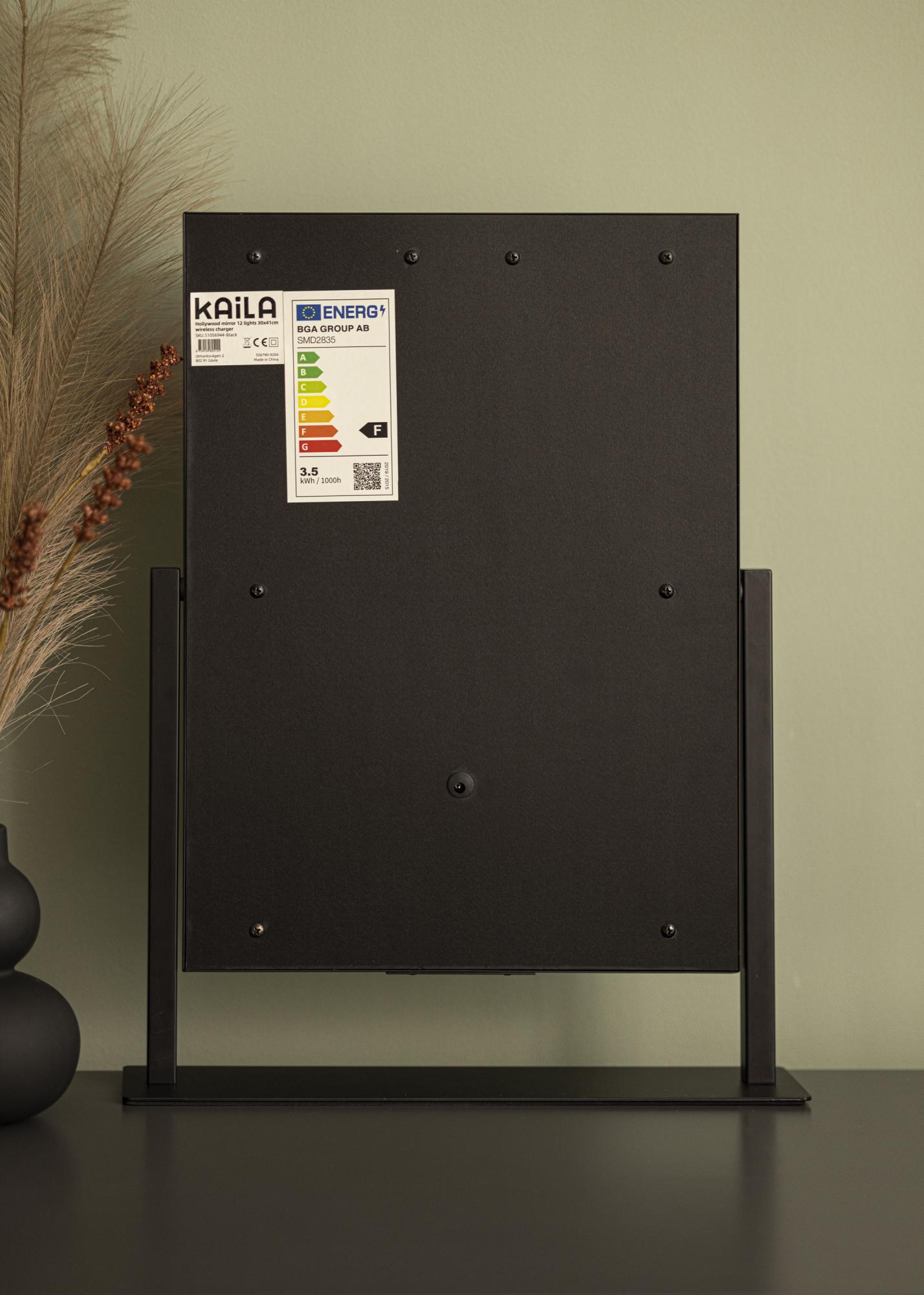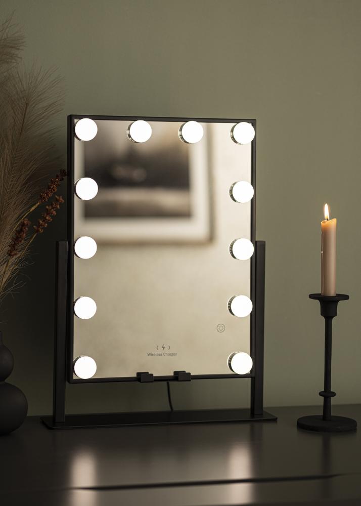KAILA Espelho para toucador Hollywood 12 Preto com carregador sem fios 30x41 cm
