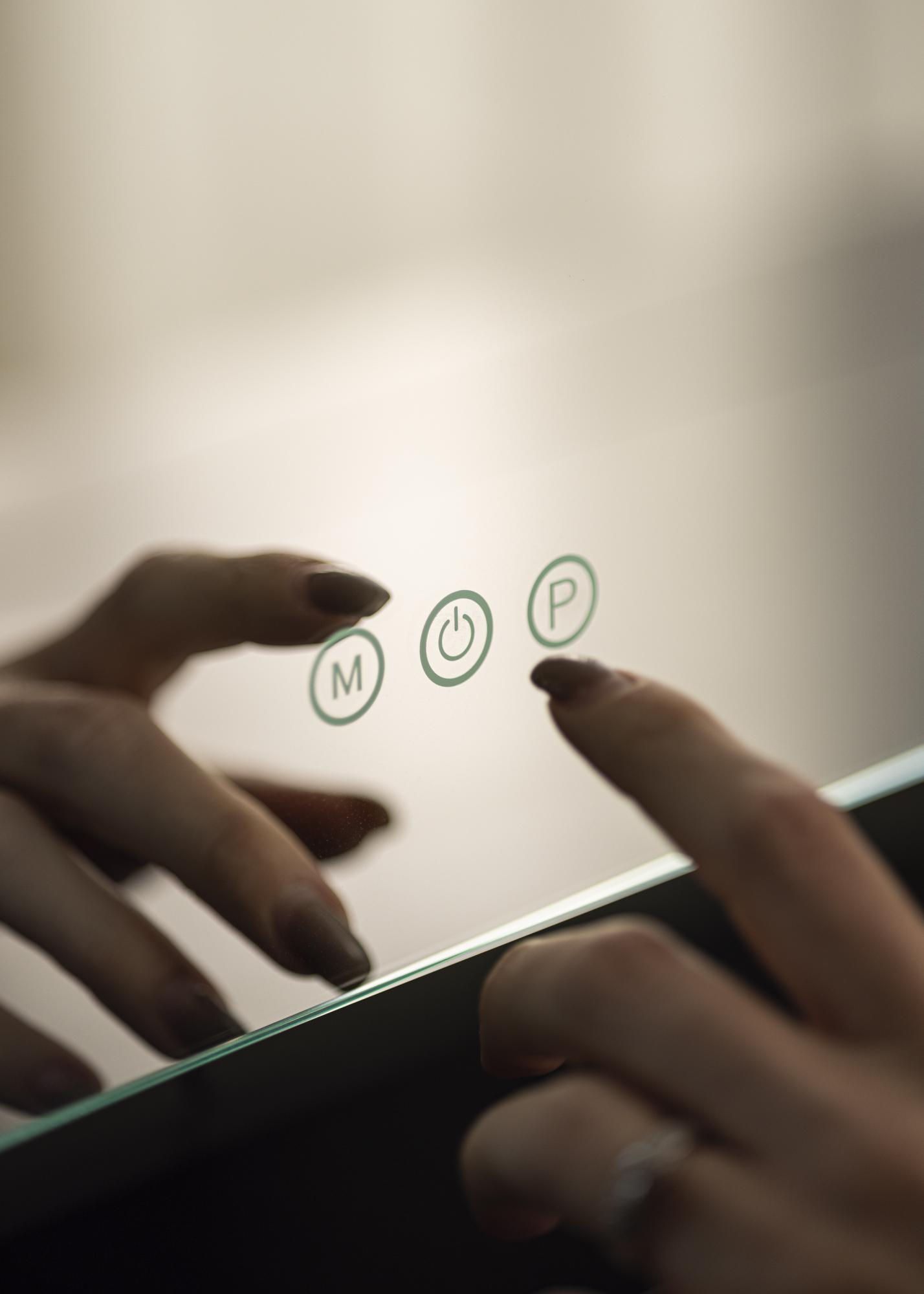 A iluminação LED integrada pode ser facilmente ajustada de acordo com as suas necessidades. Com a ajuda do botão tátil marcado com "M", pode ajustar a temperatura de cor da luz e com o botão tátil marcado com "P", pode ajustar a intensidade da iluminação.