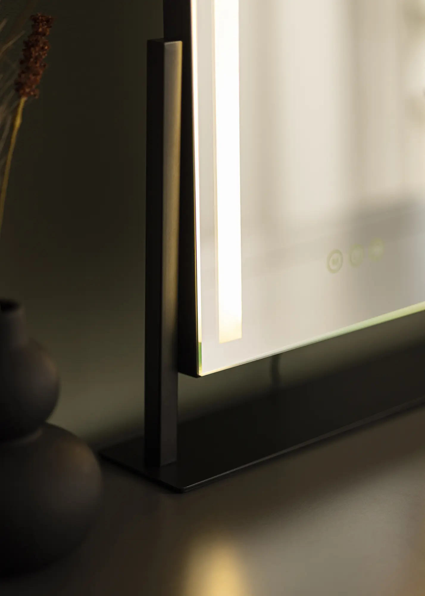 Este espelho para toucador elegante será um elegante detalhe de decoração em mesas de todos os quartos da casa. O espelho tem um tamanho compacto, com uma superfície espelhada de 30x41 cm, o que o torna uma ótima escolha mesmo em espaços limitados. O design inteligente permite que ajuste o ângulo do espelho para uma posição confortável ao se olhar no espelho.