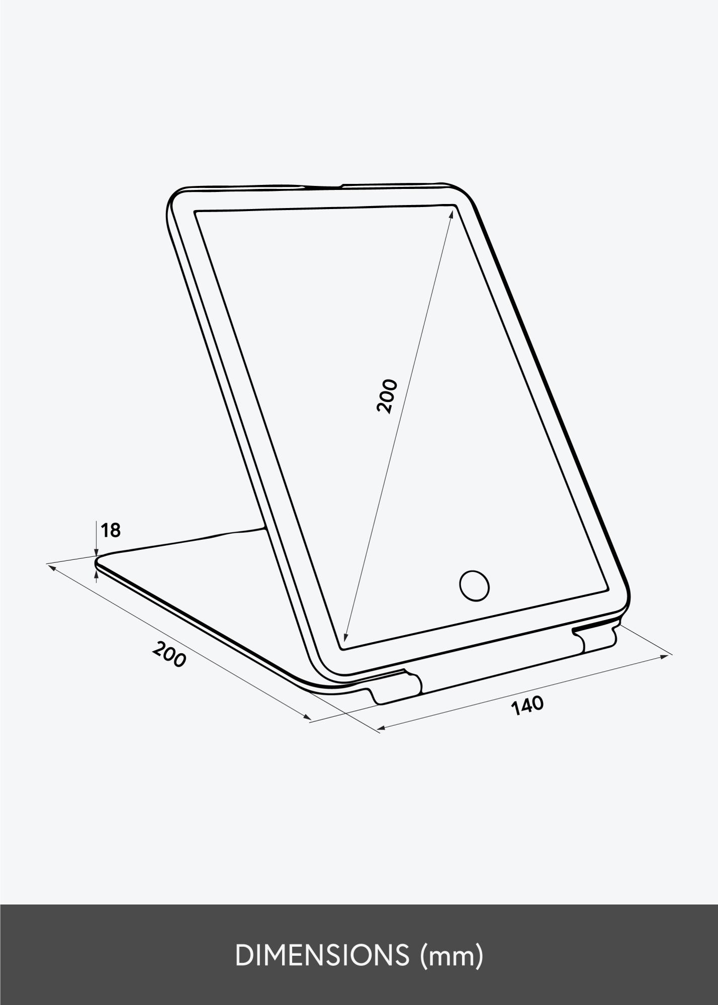 Bonito, prático e leve - este espelho para toucador tem tudo o que precisa quando está em movimento. O formato compacto, com uma superfície espelhada de 14x20 cm, torna-o fácil de transportar na mala em todas as ocasiões. O espelho para toucador tem um design dobrável que protege a superfície espelhada do pó quando não está em uso, e quando está aberto, pode ajustar o ângulo do espelho como desejar.