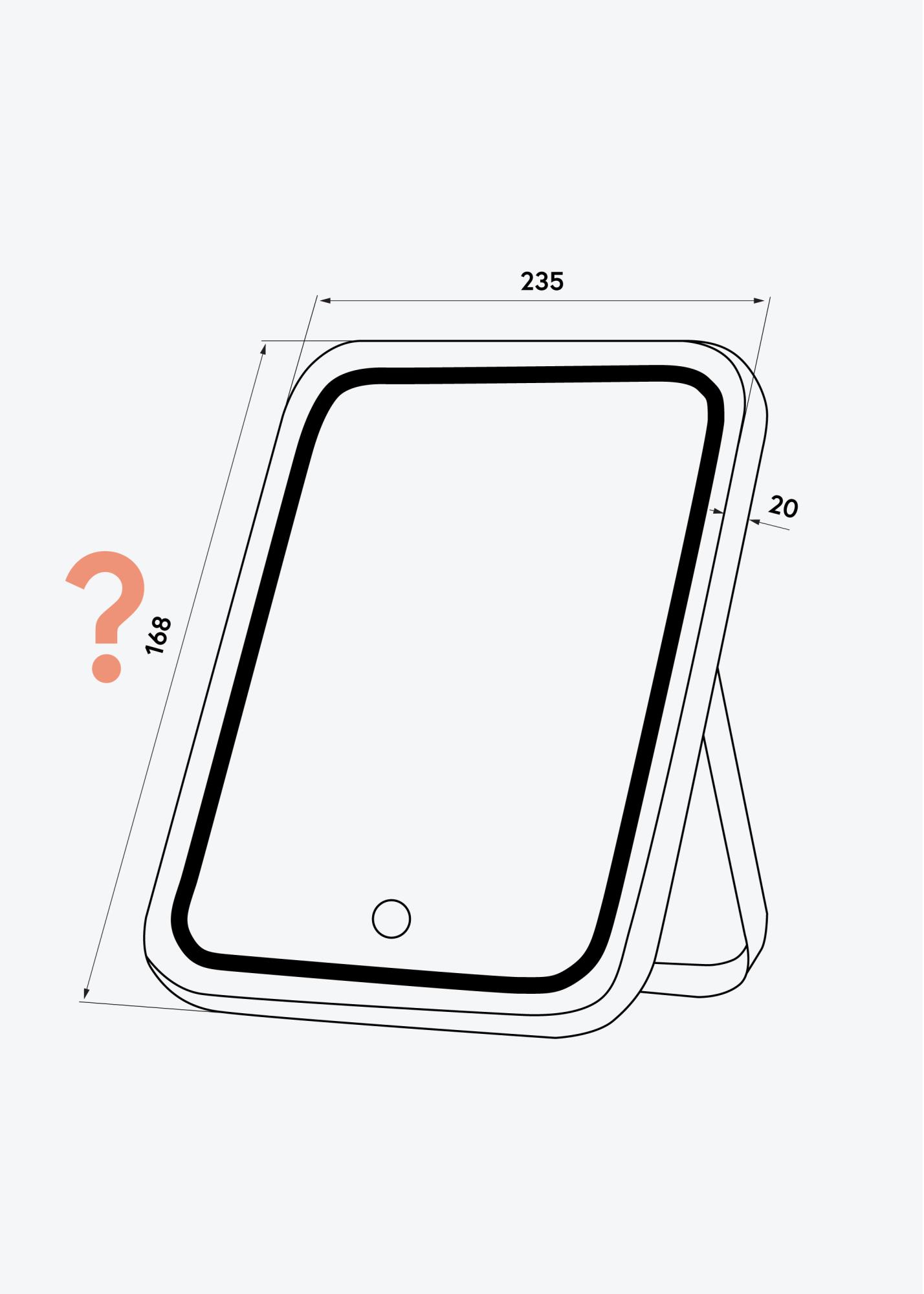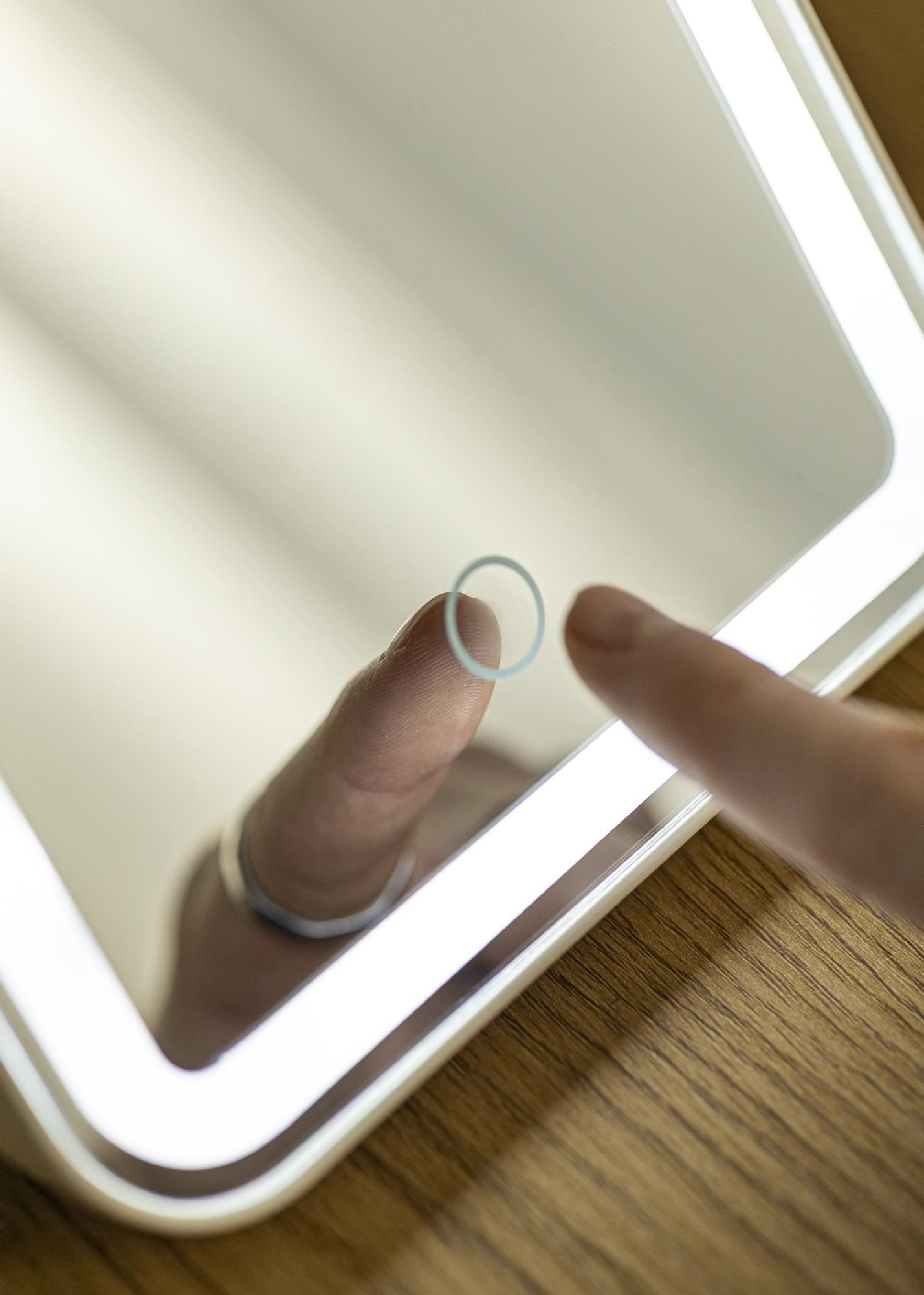 Este é um espelho para toucador em tamanho reduzido, perfeito para quem gosta de ter um espelho consigo quando está a viajar. Tem uma superfície espelhada de 16,5x23 cm enquadrada por uma elegante faixa de LED. Para sua conveniência, pode facilmente ajustar a intensidade da luz ou alterar a temperatura de cor da iluminação. Para isso, basta pressionar o botão tátil na parte inferior do espelho durante alguns segundos.