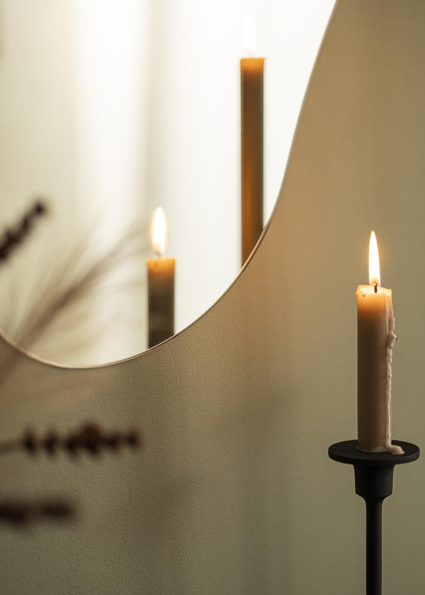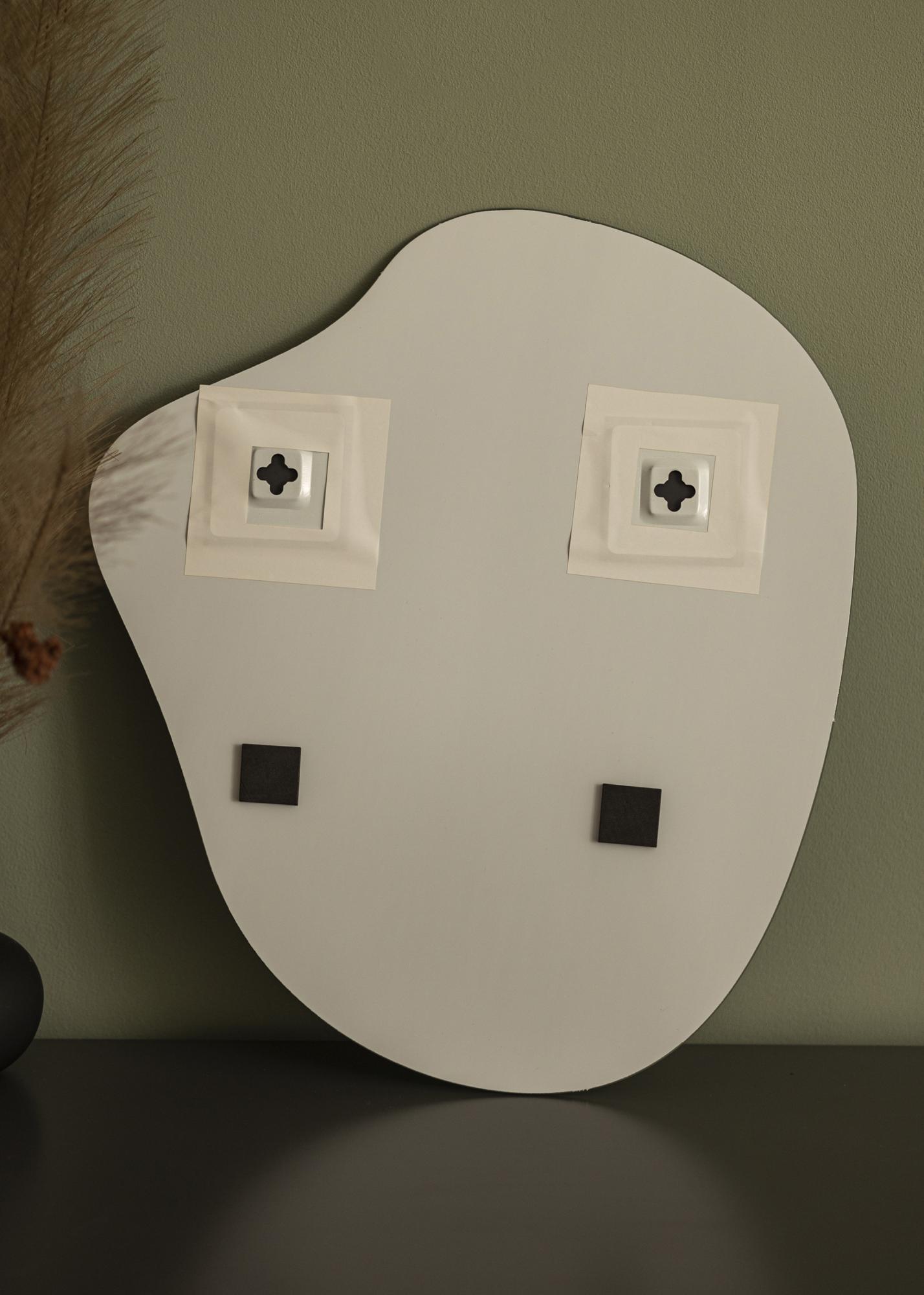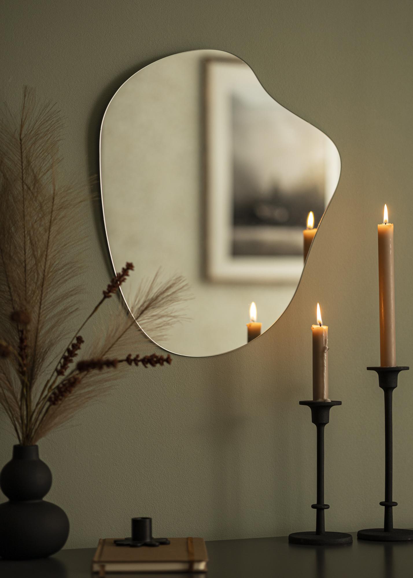 Deixe este espelho de parede moderno se tornar um emocionante detalhe de decoração que reflete lindamente a luz das janelas e lâmpadas. A forma única e a falta de moldura dão ao espelho sua aparência inconfundível, que é moderna e minimalista.