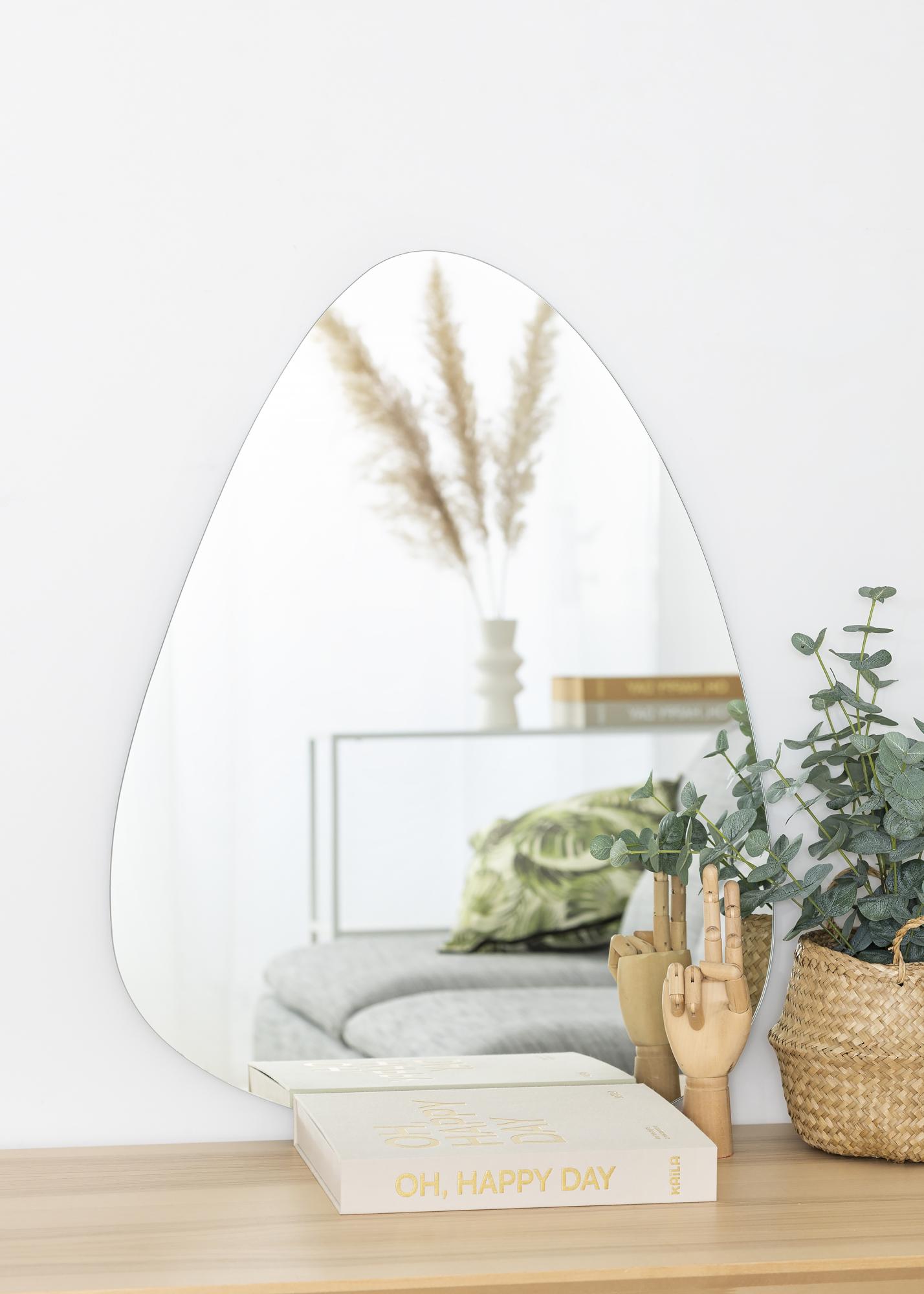 Um espelho assimétrico se torna um detalhe de decoração interessante e moderno em sua casa! Além disso, este espelho é muito fino, o que realça sua aparência elegante.
