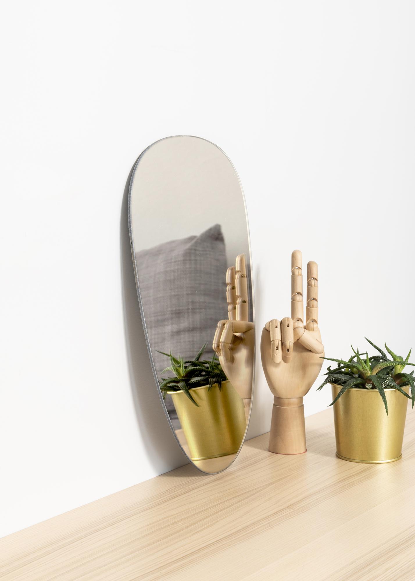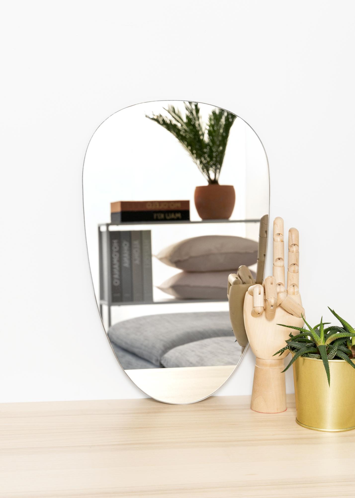 Um espelho com uma forma excitante e um pouco diferente faz uma impressão moderna na sua casa! Este espelho assimétrico tem apenas 4 mm de espessura e não tem moldura, o que confere-lhe uma aparência muito elegante e elegante.