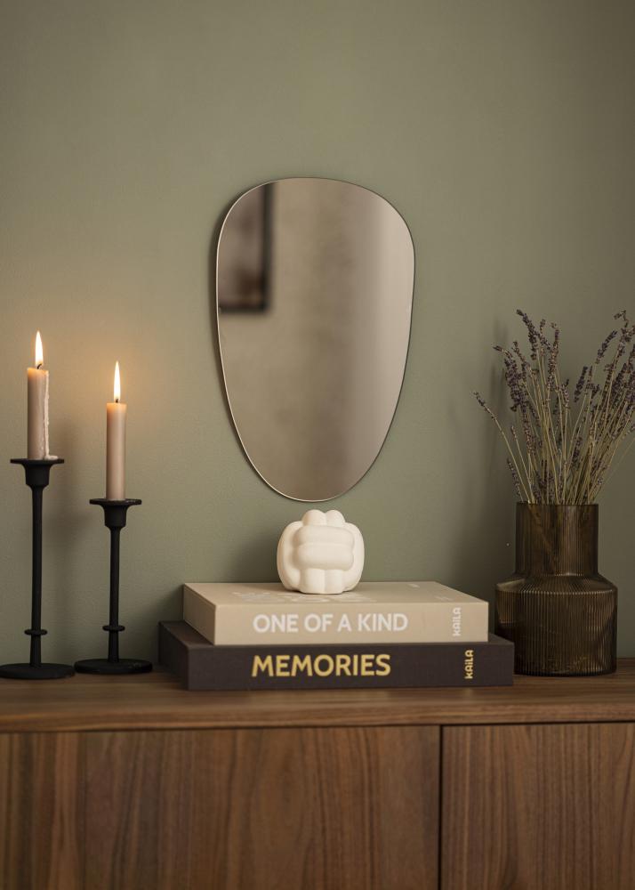 Este é um espelho assimétrico com formas suaves e uma aparência muito elegante e moderna. O vidro do espelho é tonalizado em um tom elegante de bronze escuro, tornando-o um detalhe de decoração impactante que combina facilmente com muitas cores diferentes de decoração. O espelho também é muito fino e não tem moldura, o que reforça ainda mais a sensação de estilo e tendência. Coloque o espelho no corredor, na sala de estar, no quarto - ou em qualquer outra divisão onde queira adicionar função e design elegante sueco!