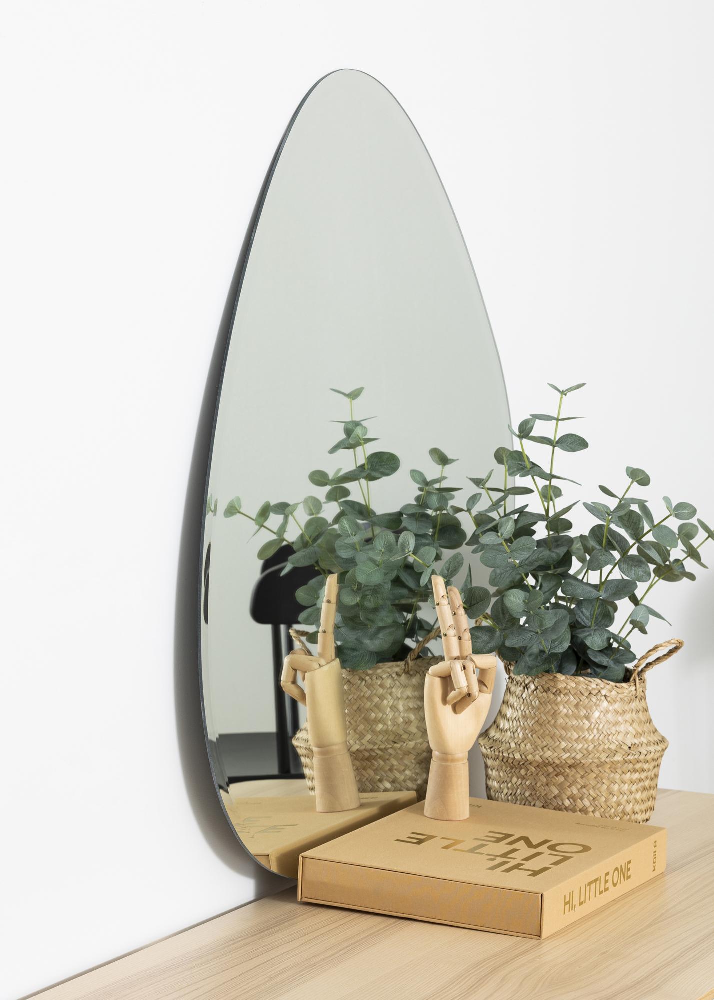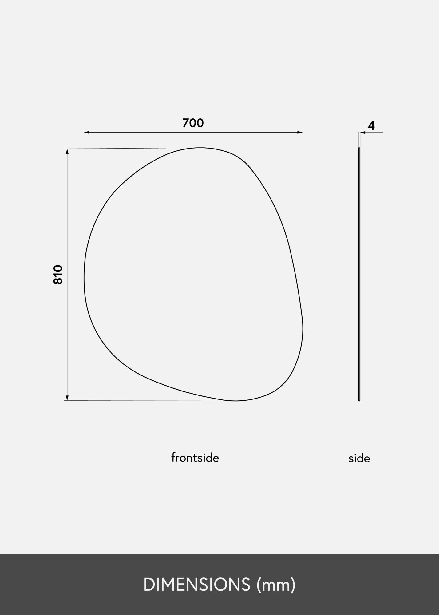 Este espelho de parede da KAILA tem uma forma assimétrica elegante que lembra uma gota. O espelho é muito fino e não tem moldura, o que, combinado com a borda facetada de luxo, reforça ainda mais a aparência elegante e moderna. É um espelho de parede muito decorativo que certamente chamará a atenção em qualquer ambiente em que for colocado - na sala de estar, no corredor ou no quarto. O espelho tem o tamanho de 70x81 cm.
