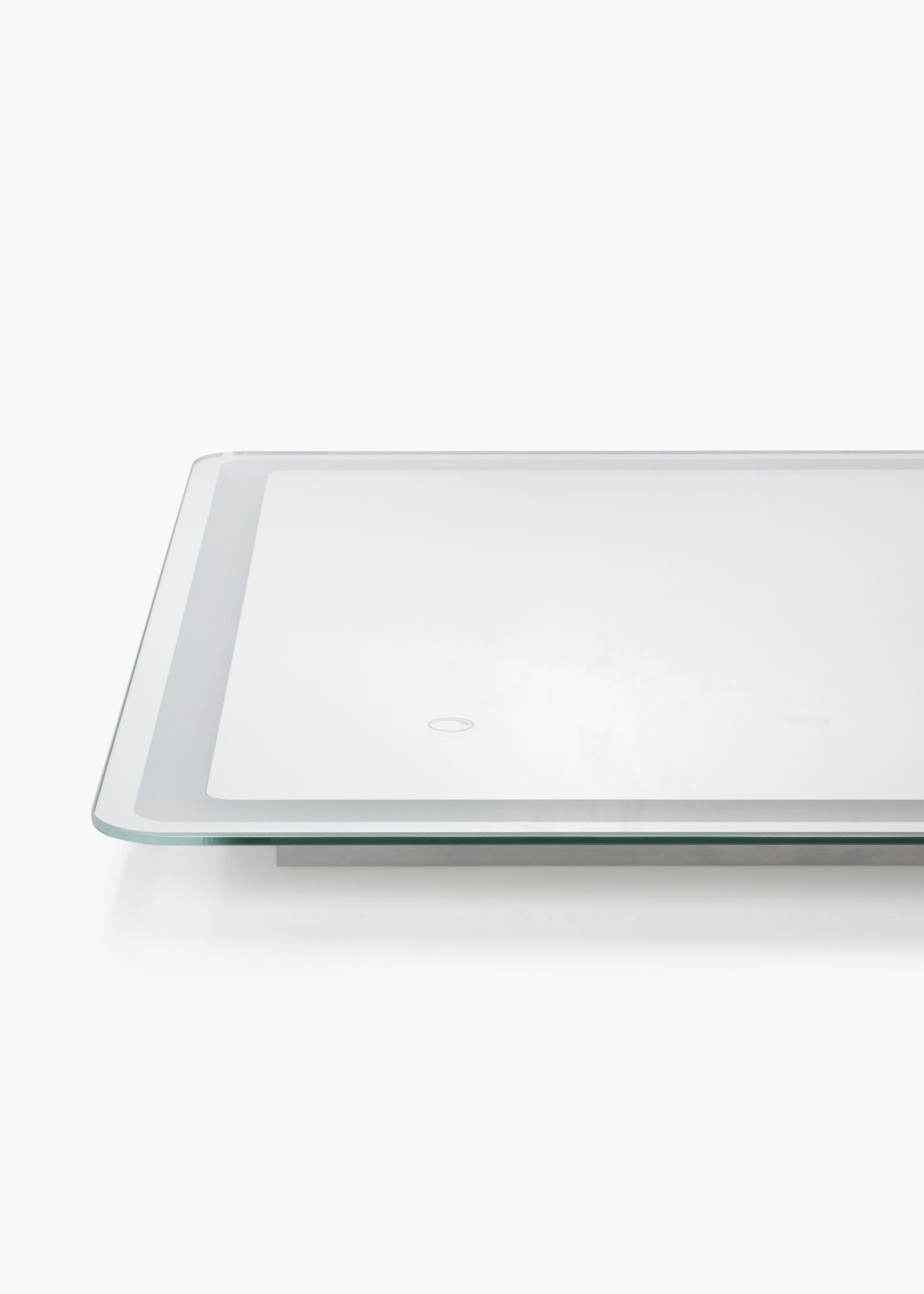 Esta é uma elegante espelho de casa de banho da marca sueca KAILA. O espelho tem bordas mais suaves e dentro dele há uma iluminação LED integrada que emoldura elegantemente o vidro do espelho. A iluminação LED integrada é regulável e proporciona uma luz branca natural de 3000K. A iluminação é facilmente ajustada mantendo o dedo pressionado no botão tátil por alguns segundos, assim a luz é atenuada para a intensidade desejada. O espelho irá lembrar a última configuração de luz quando for ligado novamente.
