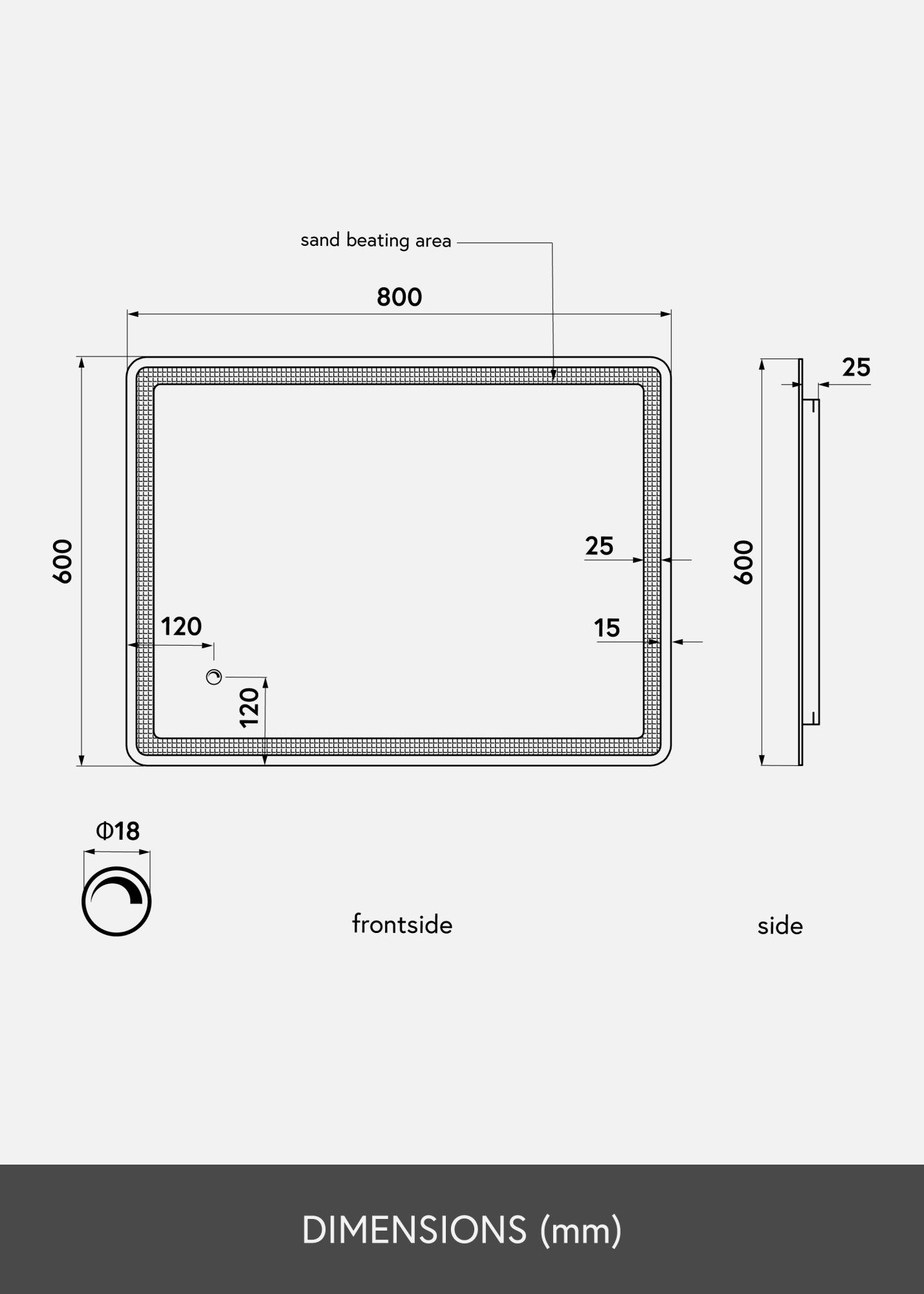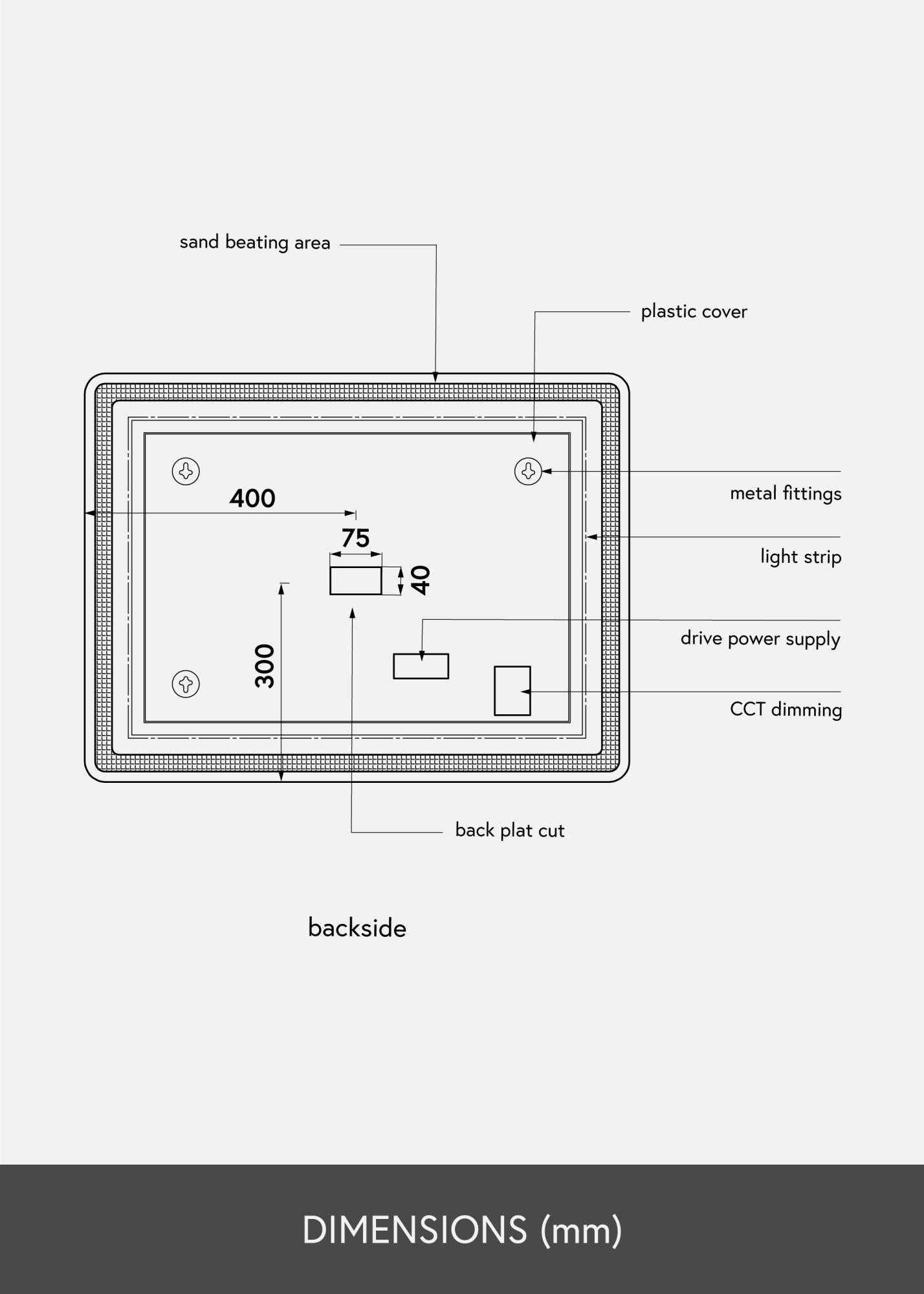 O espelho mede 60x80 cm e com os suportes de parede incluídos, pode colocá-lo tanto na horizontal quanto na vertical. O espelho é aprovado para uso em casa de banhos. O espelho de casa de banho destina-se a instalação fixa e deve ser conectado a um interruptor de energia. Para que o espelho funcione corretamente, ele deve ser conectado a um interruptor de energia comum, não a um interruptor de regulador.