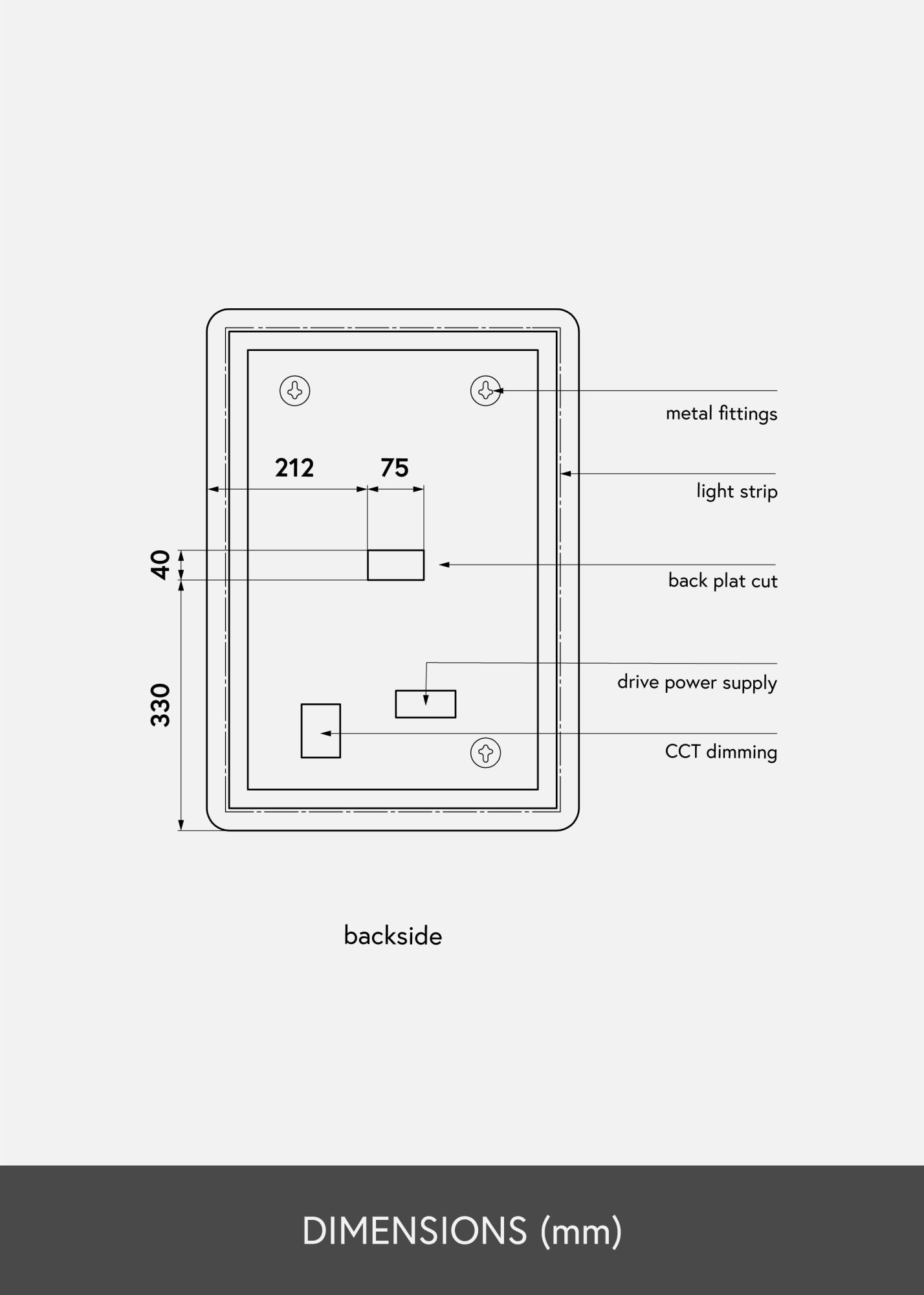 O elegante espelho de casa de banho tem apenas 3 cm de profundidade e mede 50x70 cm. O espelho de casa de banho possui suportes de parede e pode ser montado tanto horizontalmente quanto verticalmente. A iluminação LED regulável e as bordas suaves fazem com que o espelho adicione uma sensação quente e suave ao ambiente em que é colocado. O espelho é aprovado para uso em casa de banho. O espelho de casa de banho destina-se a instalação fixa e deve ser conectado a um interruptor de energia. Para que o espelho funcione corretamente, ele deve ser conectado a um interruptor de energia comum, não a um interruptor de regulador.