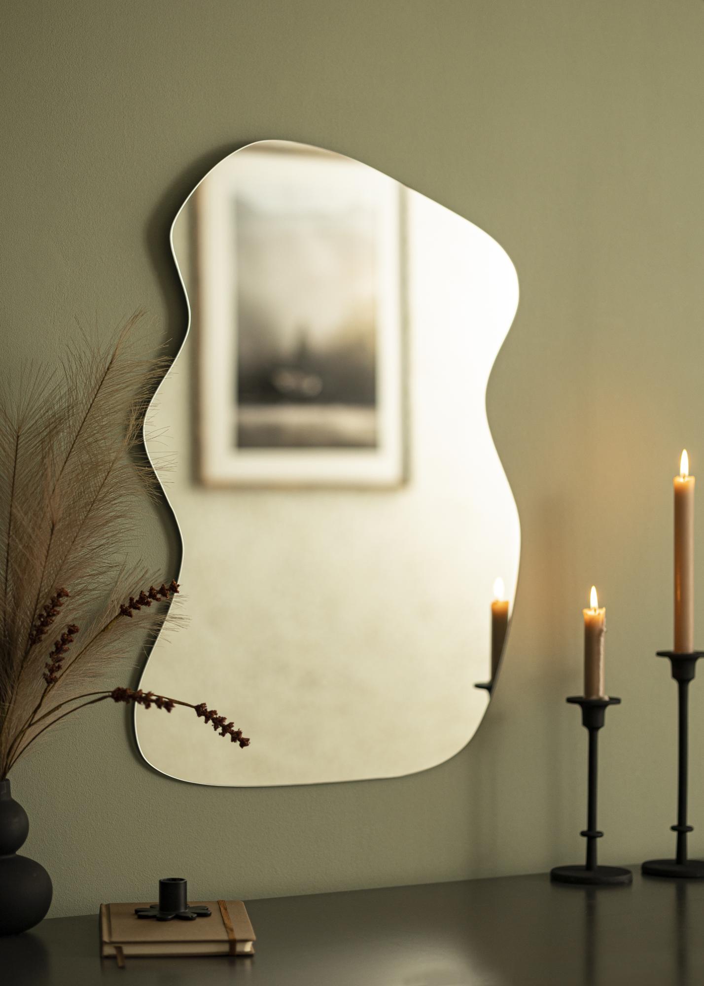 Este é um excelente espelho de parede para quem procura a combinação perfeita entre elegância clássica e modernidade. A forma levemente ondulada confere ao espelho uma aparência única e moderna, enquanto a ausência de moldura adiciona um toque extra de elegância.