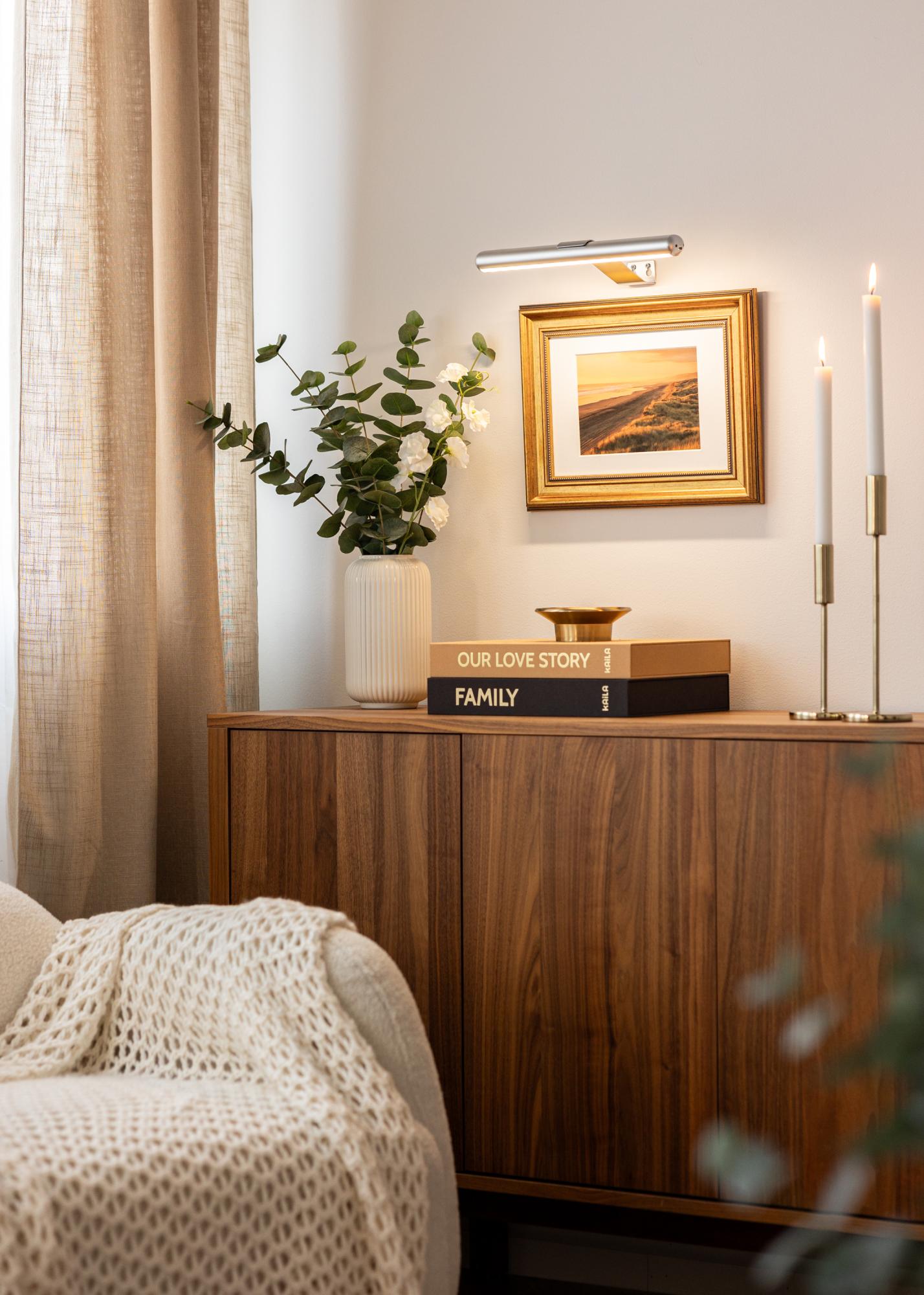 Com seu elegante acabamento prateado e design minimalista, esta iluminação de quadro se integra a diferentes tipos de interiores e realça a aparência de suas obras de arte. É fácil de instalar e os parafusos de montagem estão incluídos, o que torna a instalação suave e rápida. Esta é uma excelente solução para quem deseja iluminação prática e flexível para suas obras de arte.