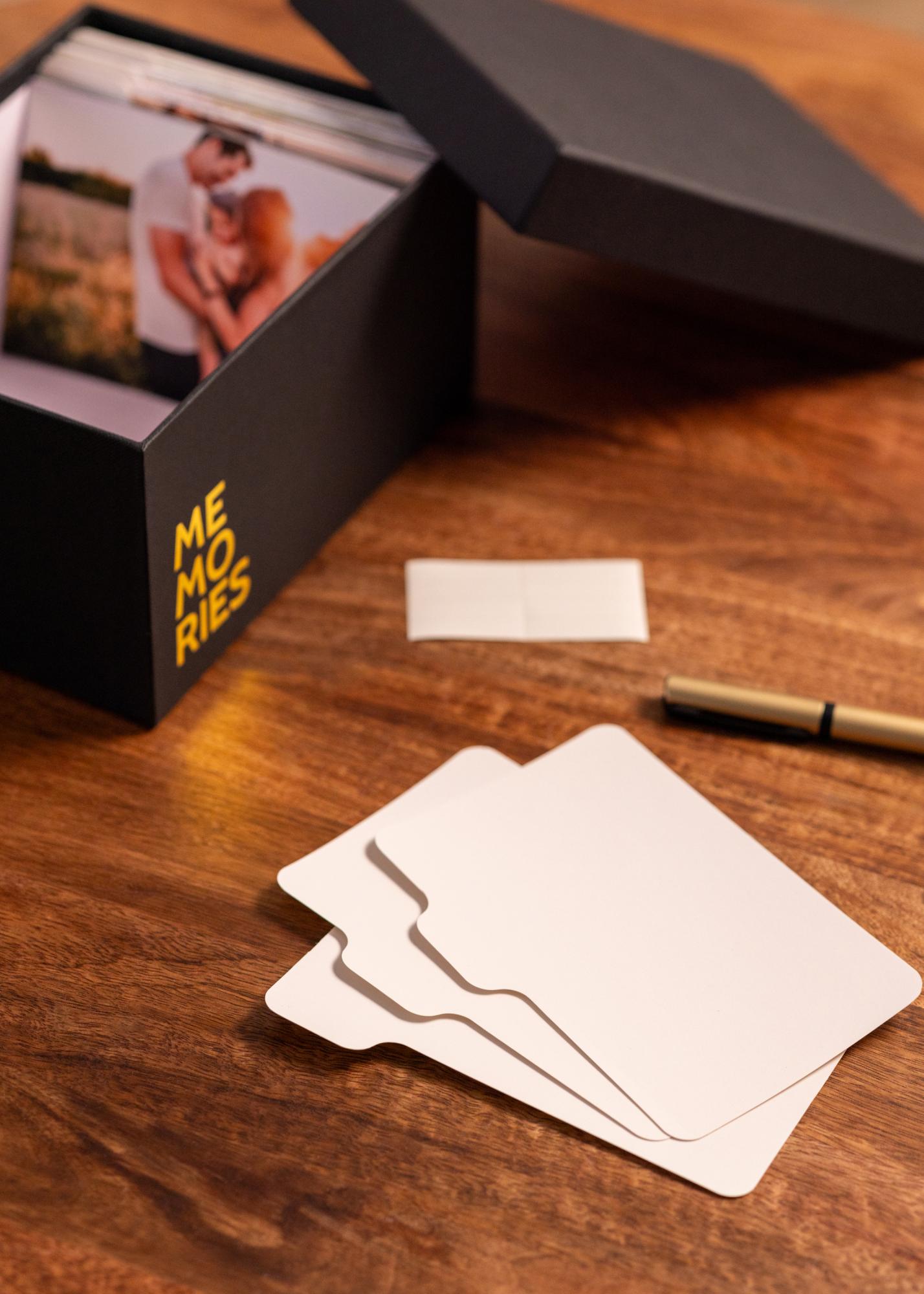 KAILA Memories Photo Box é uma caixa de armazenamento elegante e prática para até 700 fotos no tamanho 10x15 cm. O design preto elegante torna-a um detalhe atemporal em casa, ao mesmo tempo que protege e organiza suas fotografias. Perfeita para quem deseja coletar suas memórias de uma forma conveniente e estilosa.