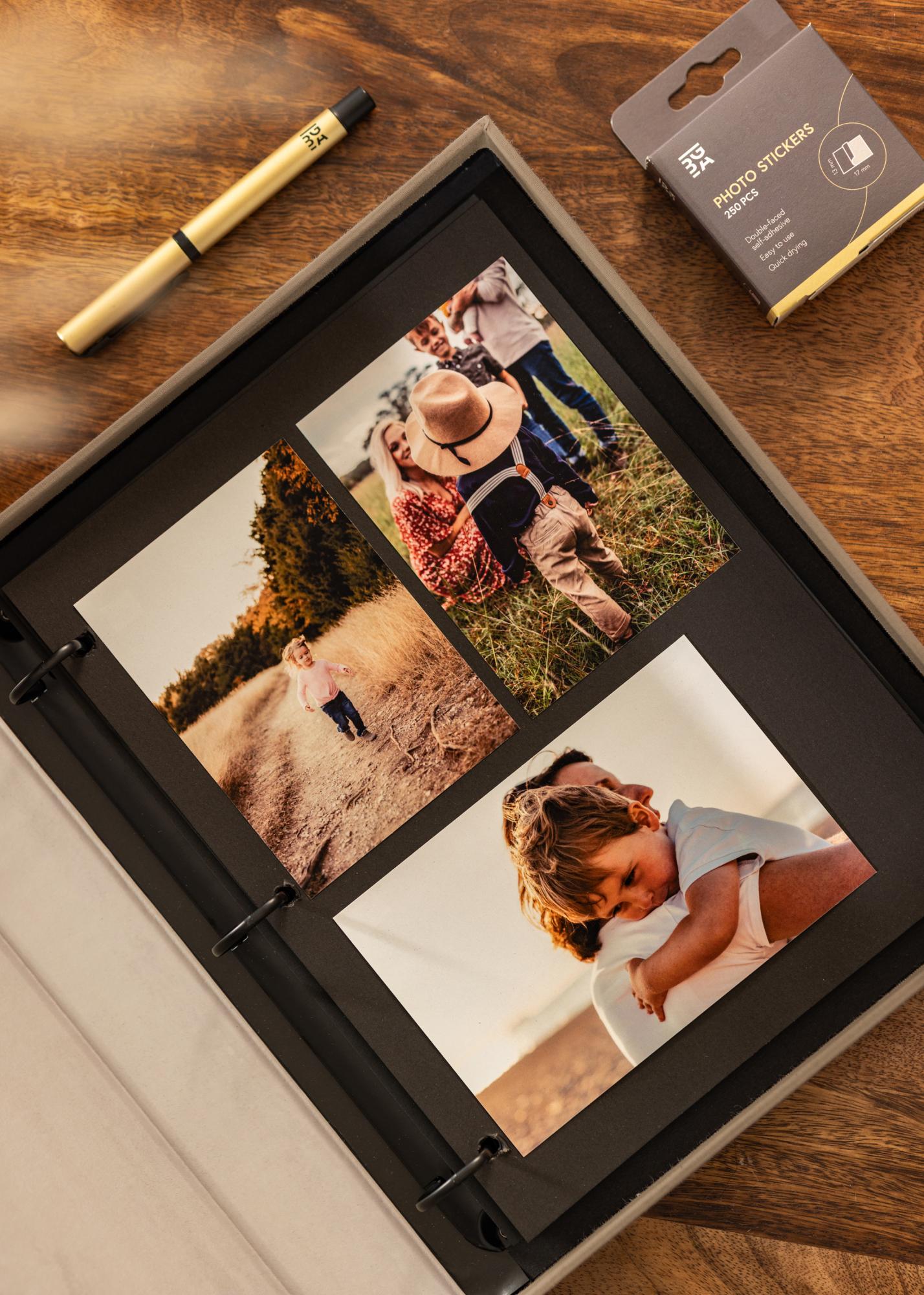 Este é o álbum de fotos para aqueles que desejam preservar suas melhores memórias fotográficas com estilo! O álbum é desenhado como um elegante livro de mesa de café, que pode ser colocado como decoração em aparadores e mesas em sua casa. No interior do álbum, encontrará uma pasta de argolas de anéis com 60 páginas pretas (30 folhas) que pode preencher com as suas melhores fotografias. Você mesmo cola as fotos no álbum, o que permite que seja criativo e combine imagens em diferentes formatos e tamanhos.