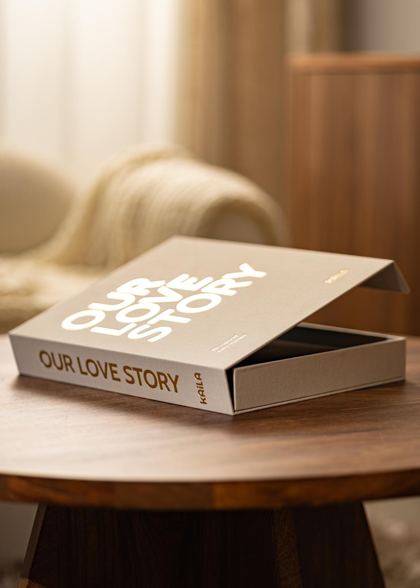 KAILA OUR LOVE story Creme - Coffee Table Photo Álbum (60 Preto Páginas)
