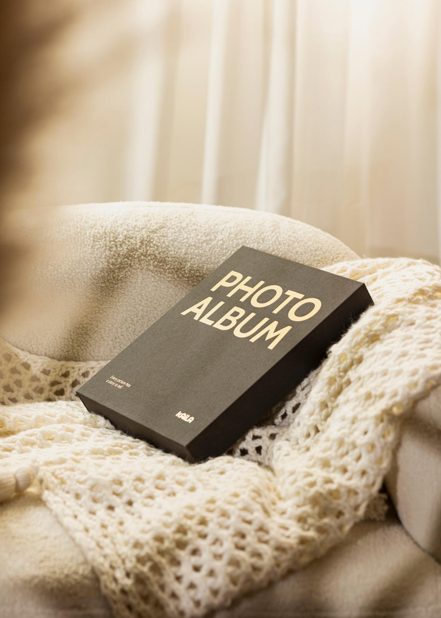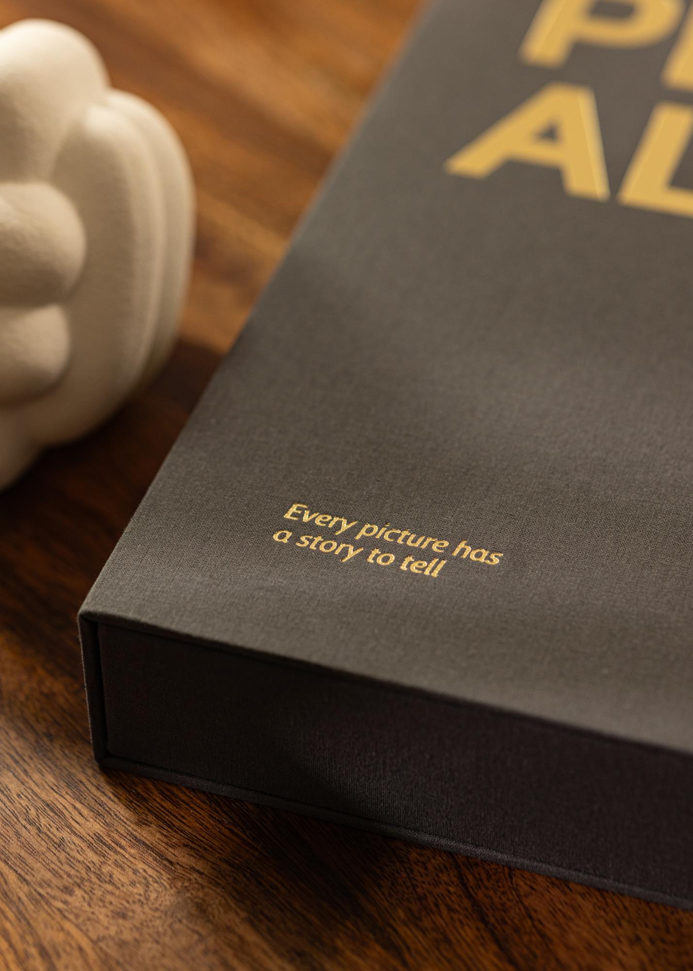 Este é o álbum de fotos para aqueles que procuram um álbum que acomodas suas melhores memórias fotográficas e que também seja bonito para se ter à mostra. O álbum é desenhado como um livro de mesa de café, com um design moderno que se torna uma decoração perfeita na mesa da sala de estar ou na estante. É desenhado como uma caixa exclusiva, com uma capa em tecido preto elegante. Ao abrir o álbum, encontrará uma pasta de argolas com 60 páginas de álbum pretas (30 folhas) que pode preencher com fotografias de momentos especiais. Você mesmo cola as imagens exatamente onde desejar.