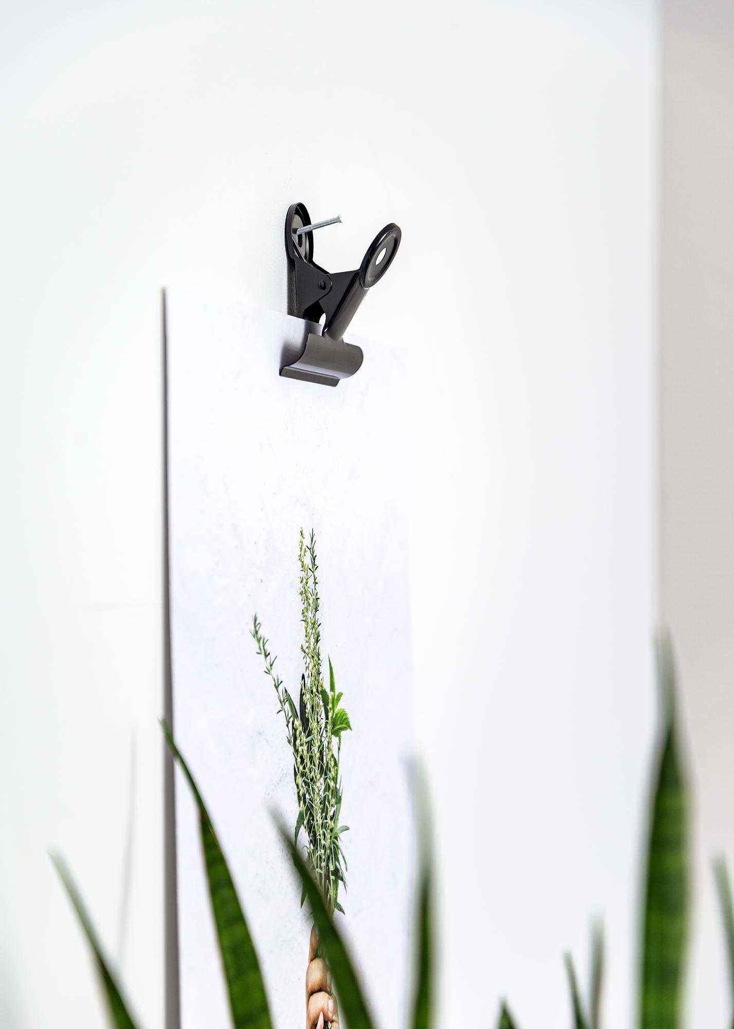 Este grampo de metal preto tem um acabamento mate elegante e dá aos seus pósteres e impressões uma suspensão chique e moderna. A abertura do grampo tem uma aderência sólida que permite fixar até mesmo o papel mais fino, ao mesmo tempo em que também é adequado para usar com imagens um pouco mais espessas. Se tiver um póster grande que deseja pendurar, pode optar por usar dois grampos para póster. O design do grampo de metal é elegante e os furos na parte superior redonda do grampo facilitam pendurá-lo na parede com um pequeno prego ou parafuso.