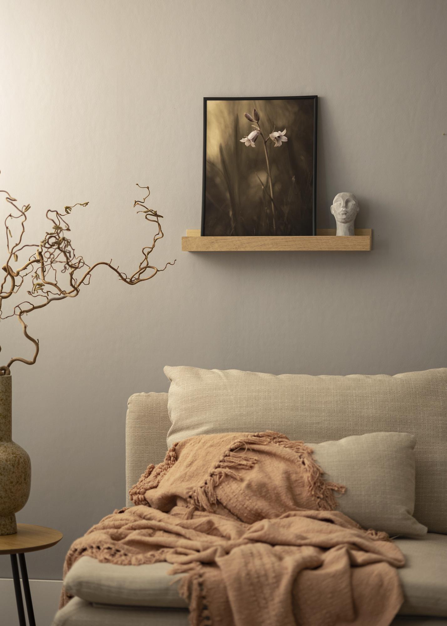 Com uma prateleira de quadros prática, pode exibir suas pinturas de maneira elegante e também ter excelentes oportunidades para variar sua arte de parede. Esta prateleira de quadros é feita de carvalho maciço e tem um design elegante com linhas retas e simples. A própria prateleira tem uma ranhura fresada que dá suporte às suas pinturas e faz com que elas tenham um ângulo bonito quando estão inclinadas contra a parede. A prateleira de quadros está disponível em vários comprimentos diferentes, sendo que este modelo tem 50 cm de comprimento. A prateleira de quadros também possui furos pré-perfurados e, para tornar tudo ainda mais fácil, parafusos e buchas adequados também estão incluídos.